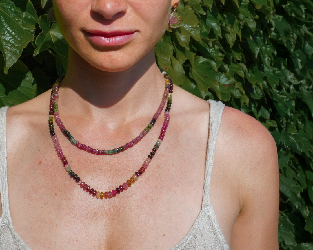 Our original hand-strung beaded collection featuring colored gemstones inspired by the Arizona deserts.