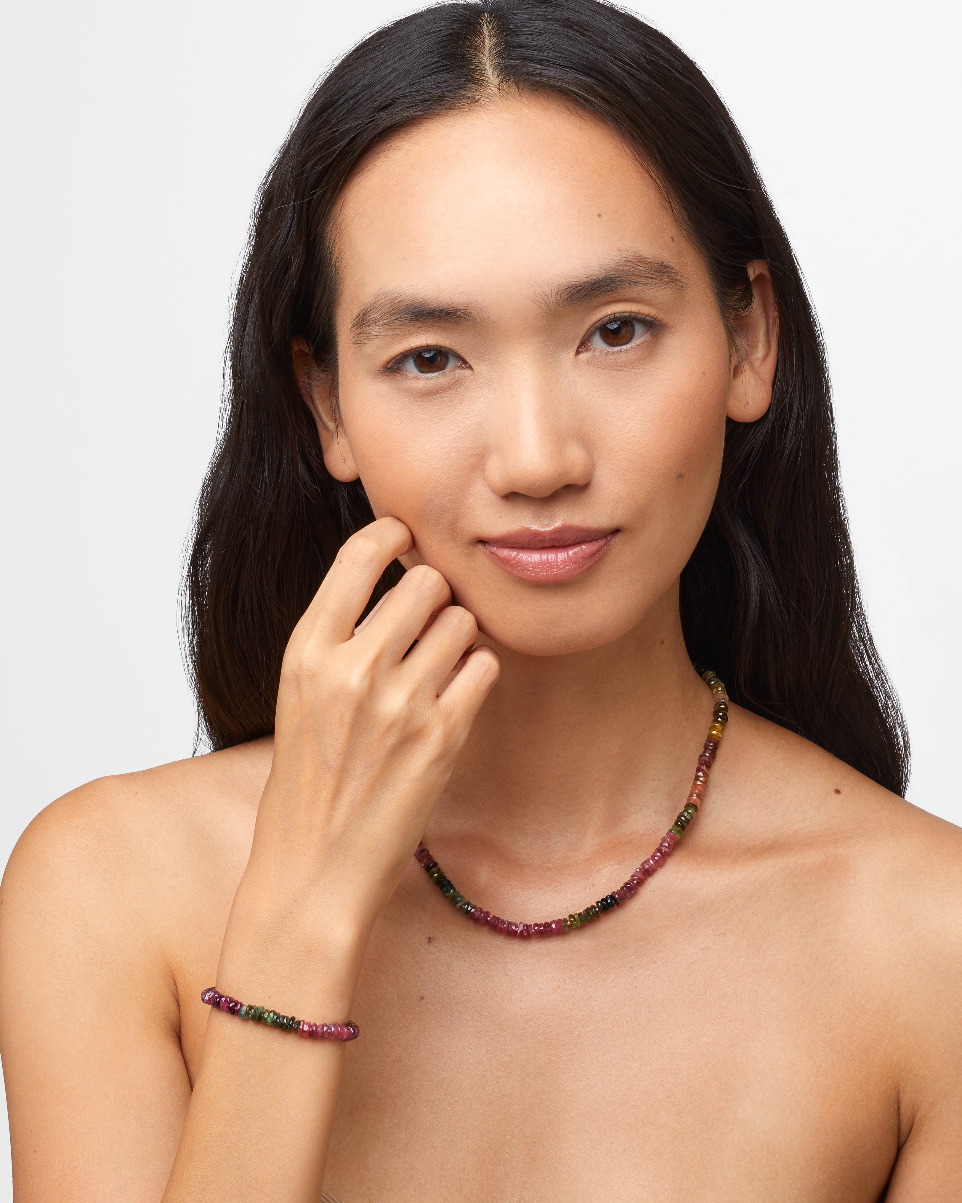 Our original hand-strung beaded collection featuring colored gemstones inspired by the Arizona deserts.