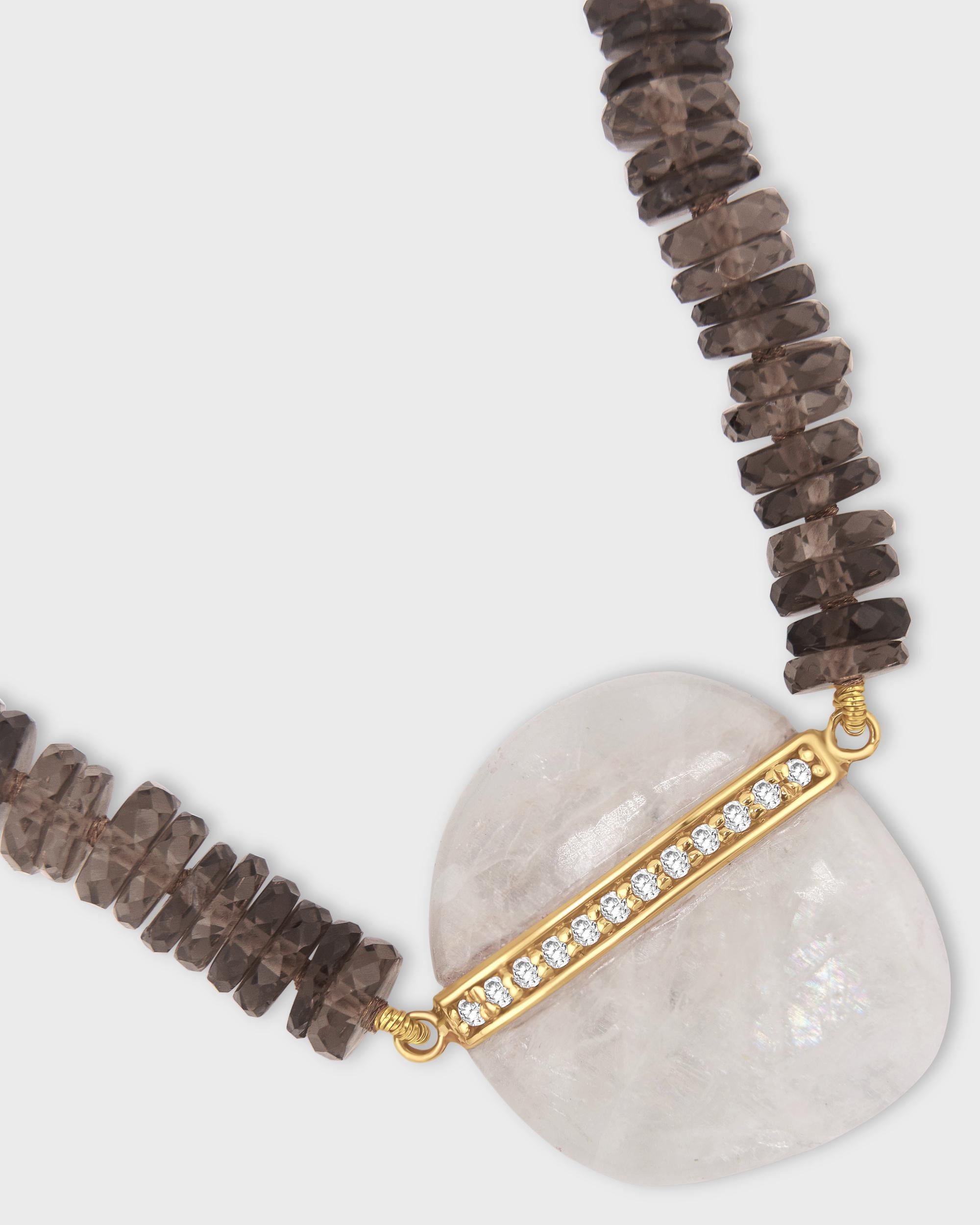 Aurora Smoky Quartz Moonstone Diamond Bar Necklace