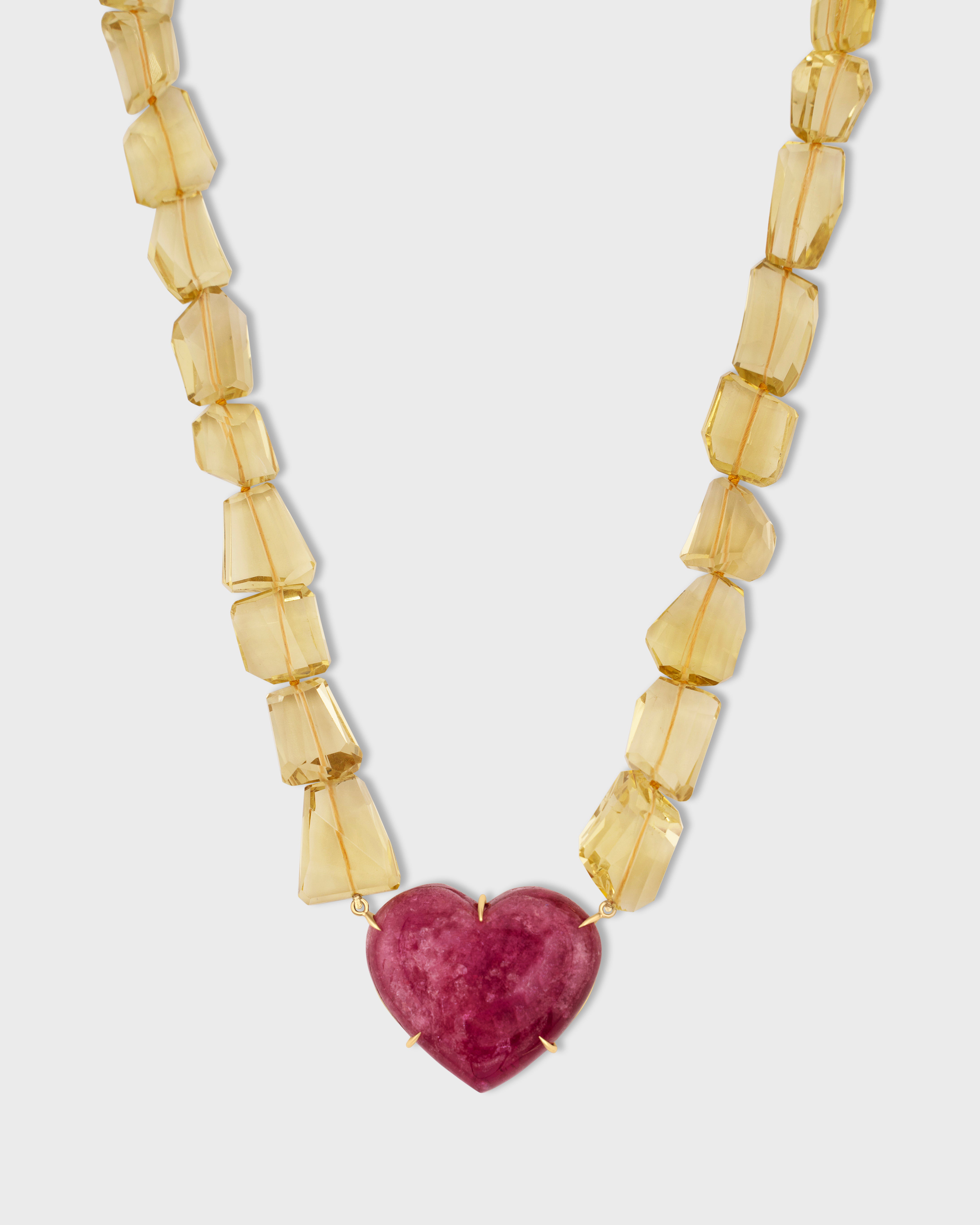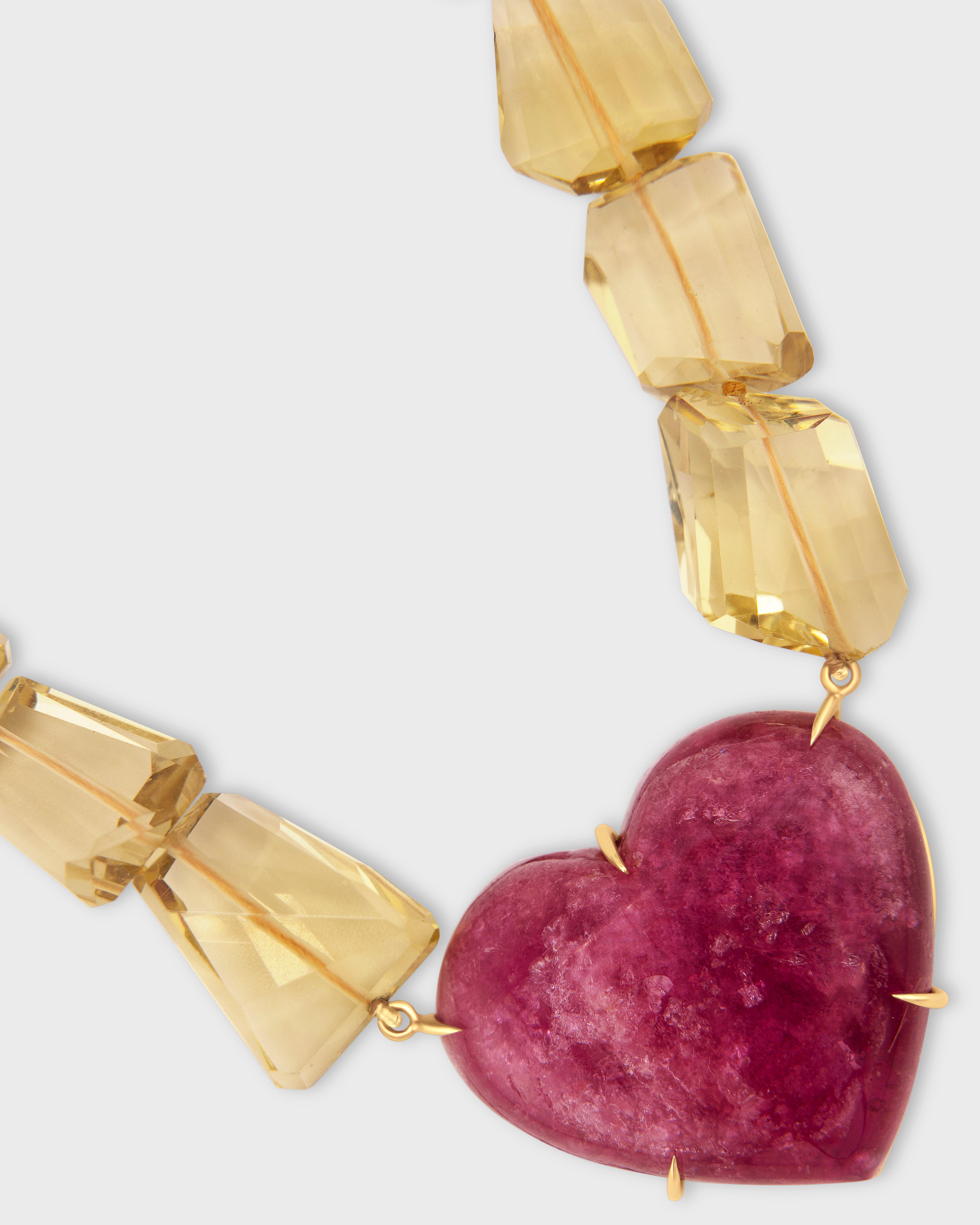 Jumbo Pink Tourmaline Heart Lemon Quartz Necklace