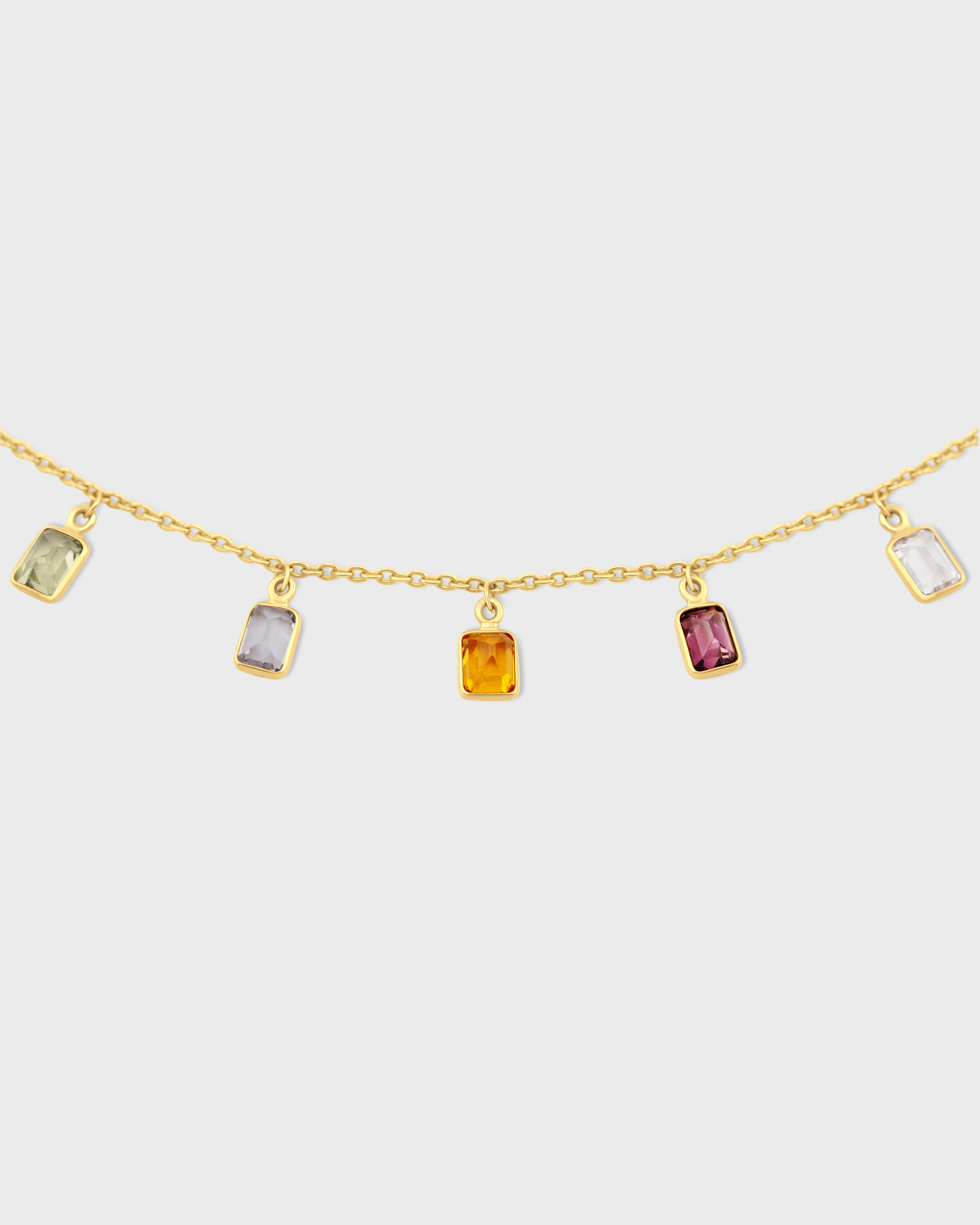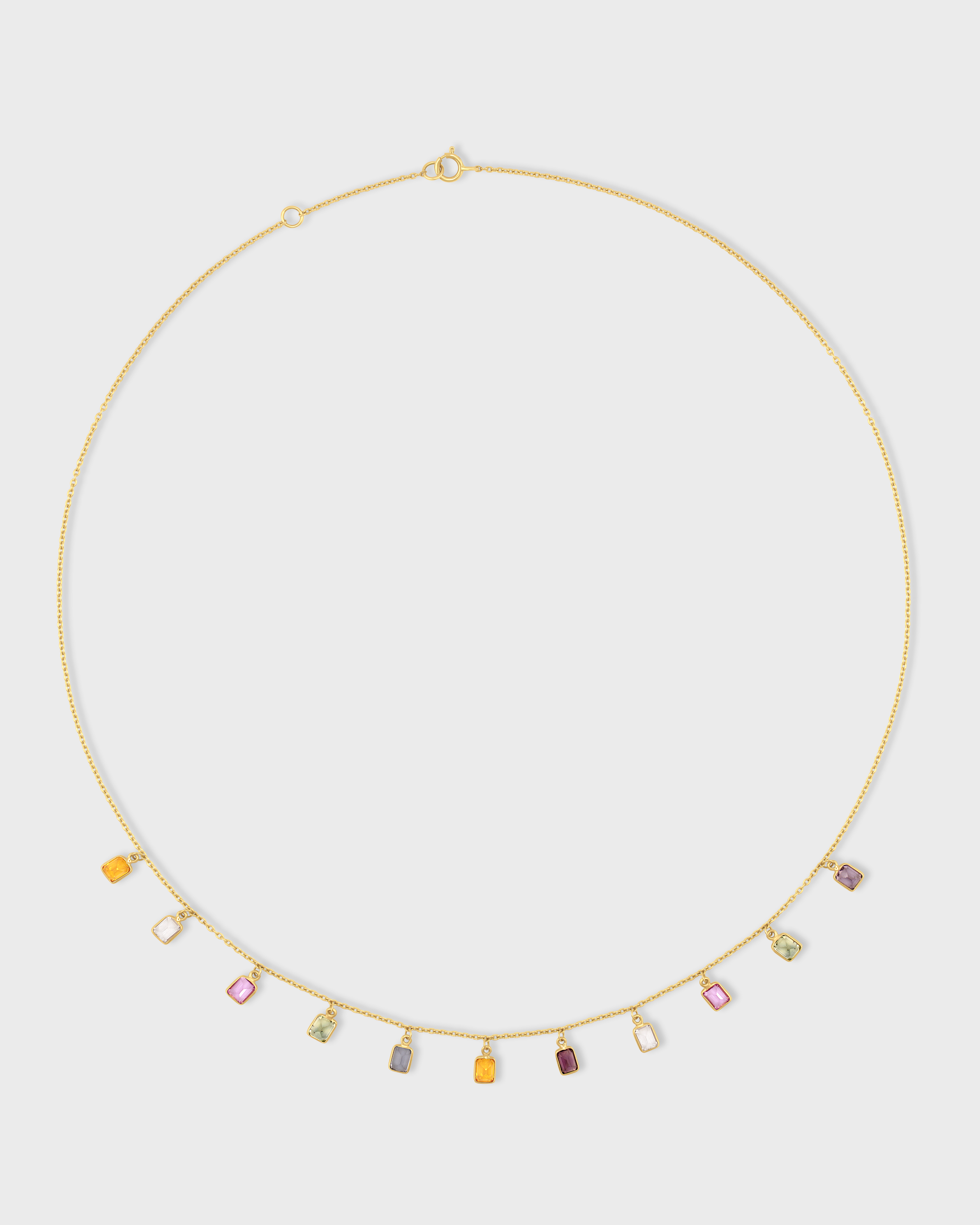 Chakra Rainbow Sapphire Gold Bezel Drop Necklace