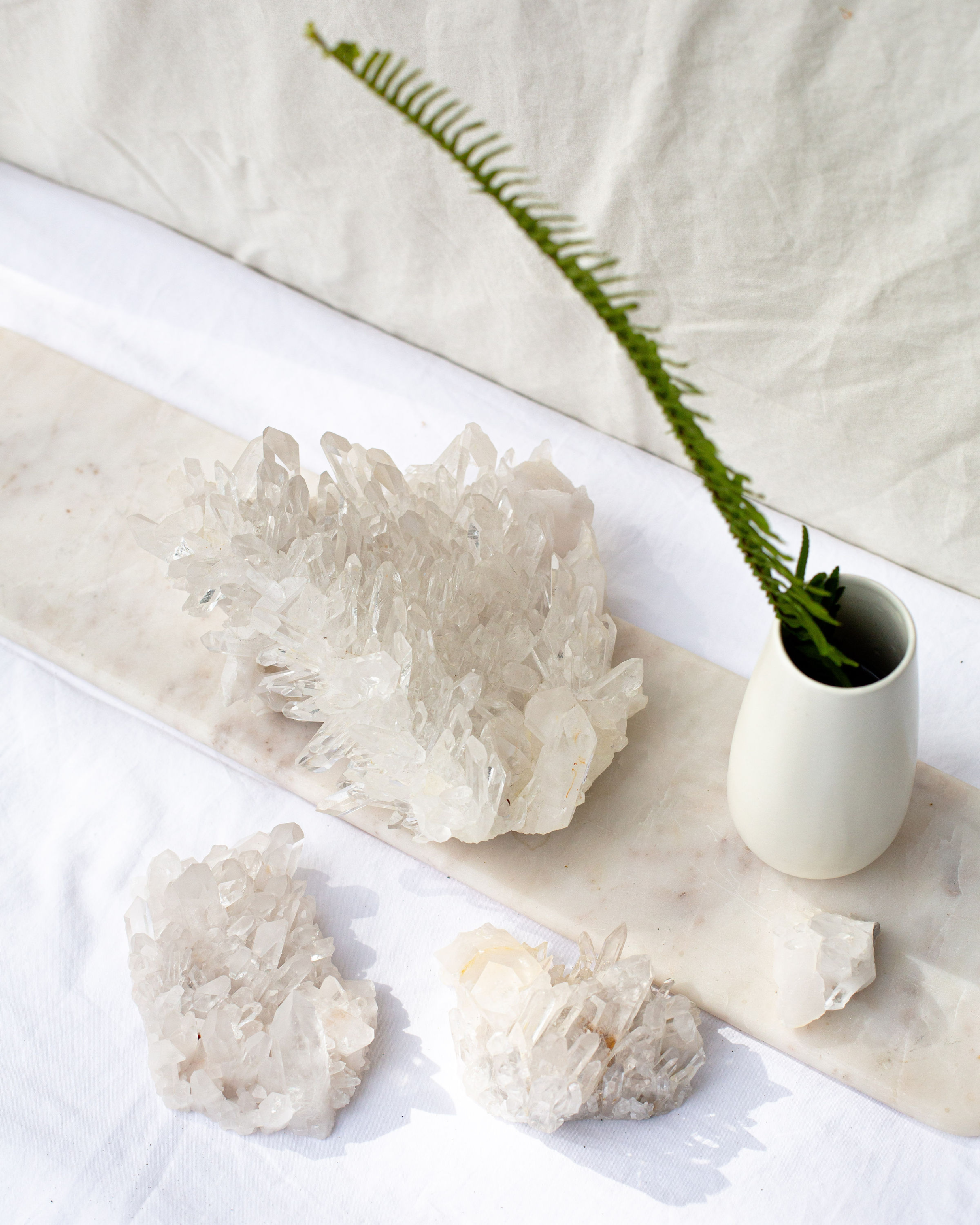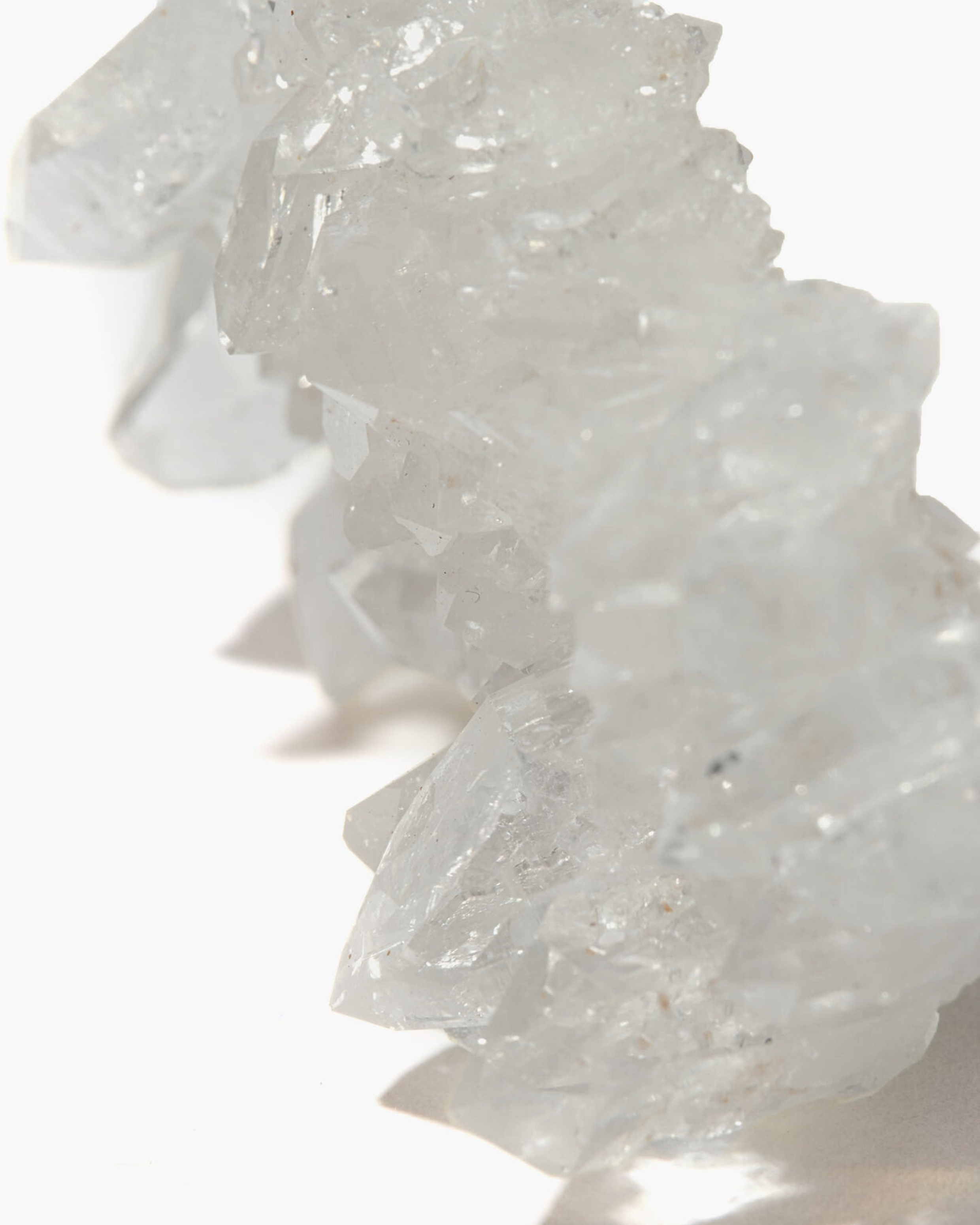 Our Crystal Quartz are ethically sourced from our mines from Arkansas, United States. Considered earth’s crystal vortex it is a powerful intersection of natural electromagnetic energy. Our mines have been documented to house the most flawless and energetically vibrational rock crystals ever discovered. Dating back 300 million years, the crystals are infused with ancient vibrational information as its been in the earth to the moment it reaches the wearer. Each crystal is one of a kind, unpolished, uncut, with natural clarity and shapes.