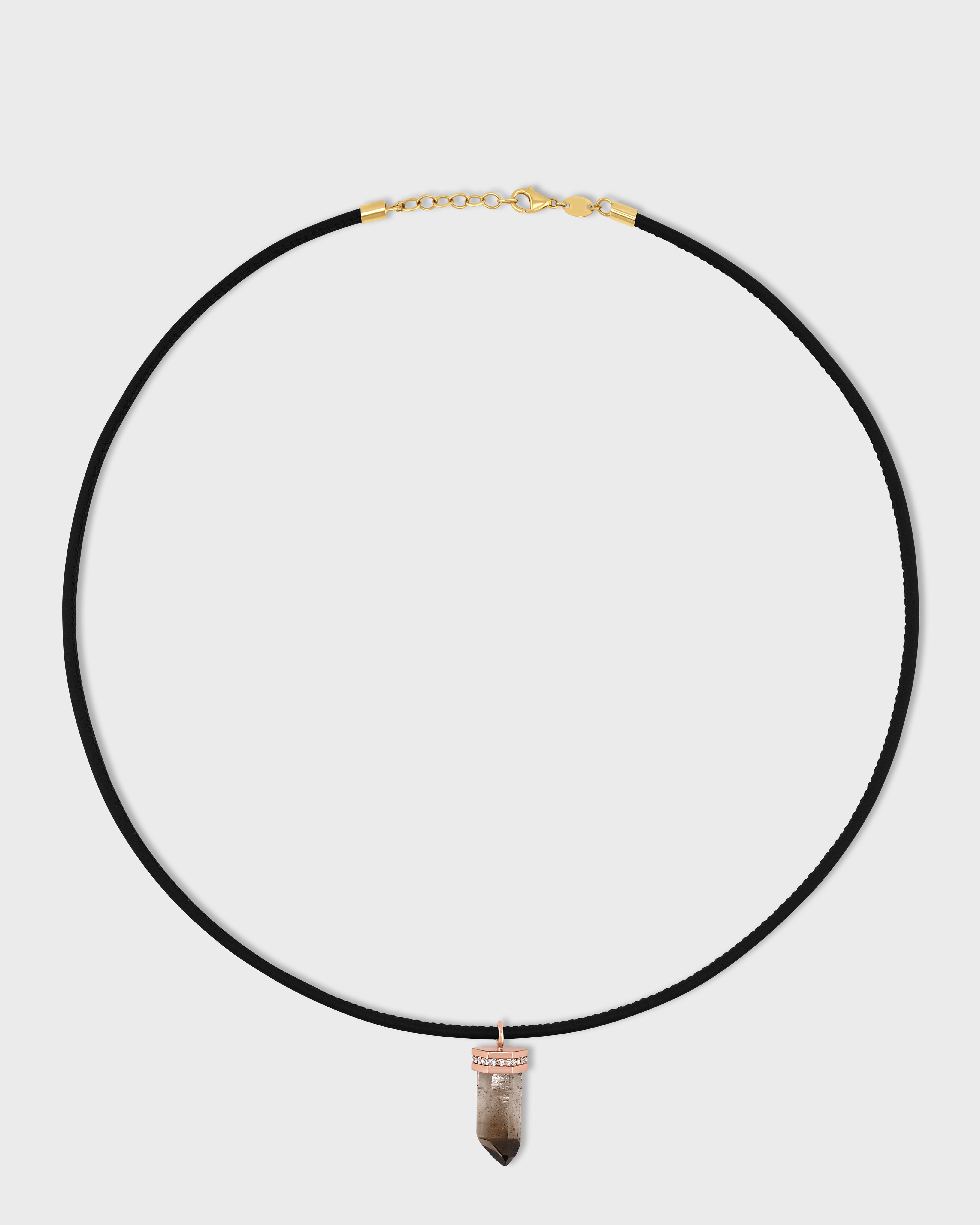 Crystalline Leather Smoky Quartz Diamond Cap Charm Necklace