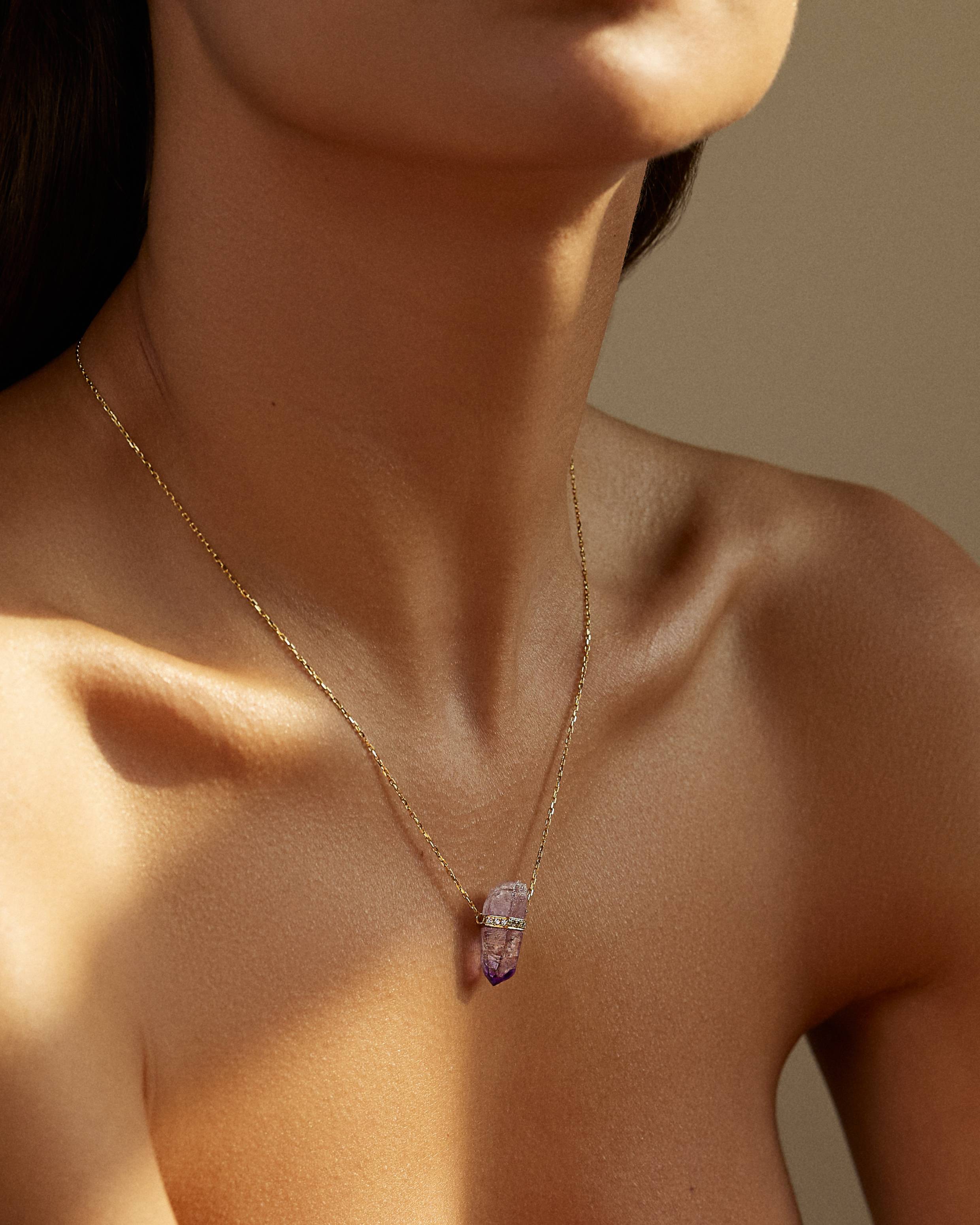 Crystalline Veracruz Amethyst Diamond Bar Necklace