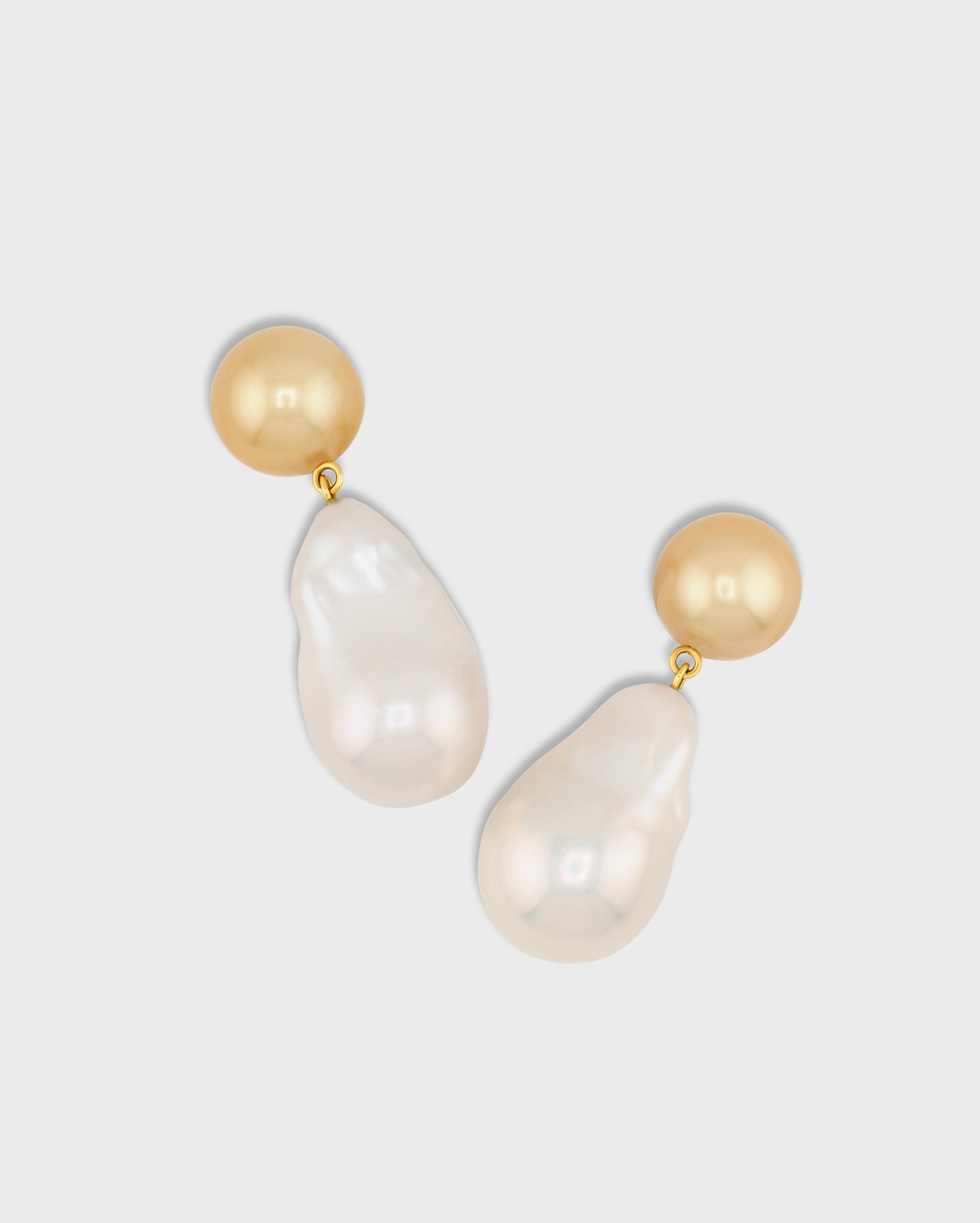 Elegant golden south sea and baroque pearl earrings. Perfect for any occasion formal or casual.