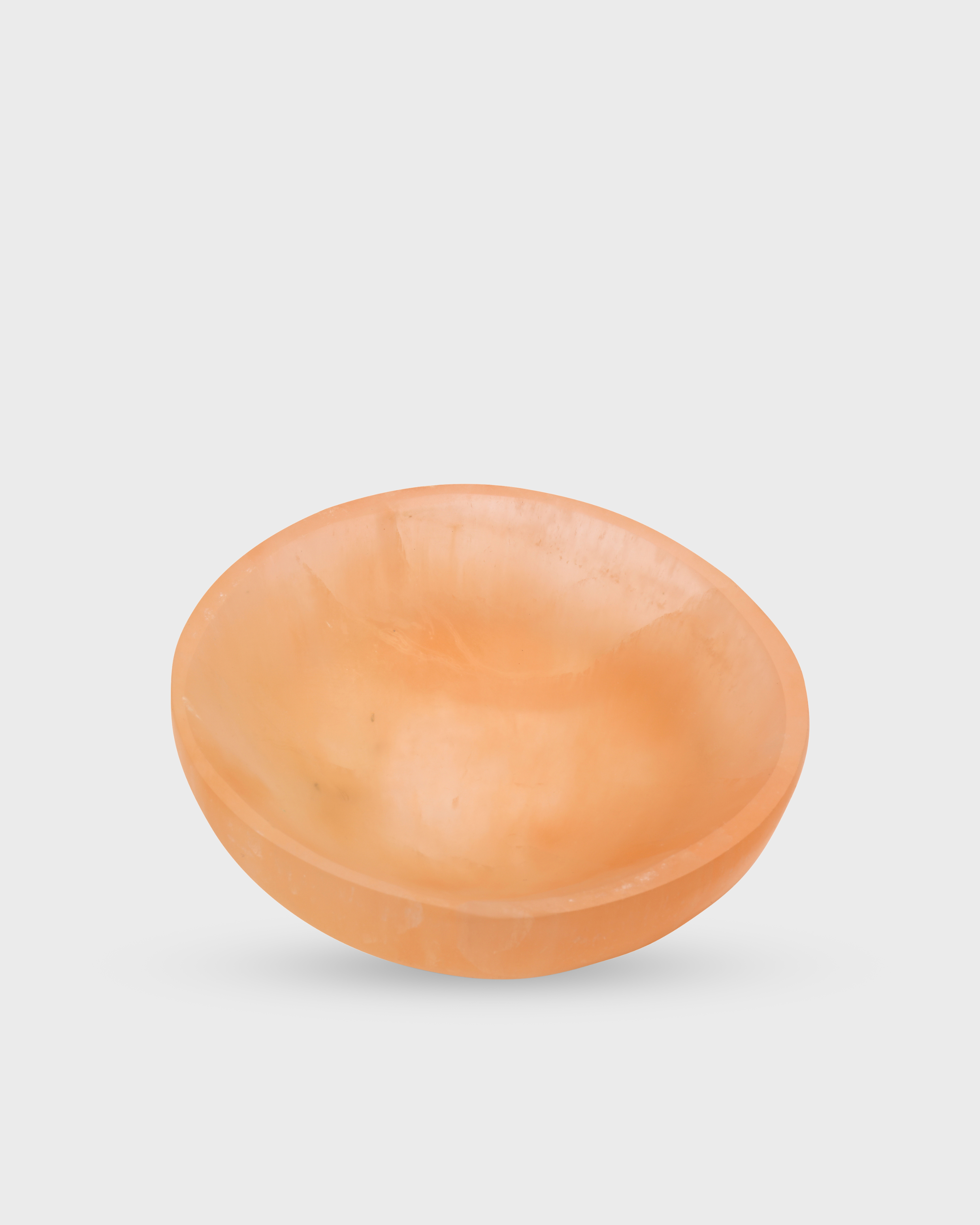 Carved from soft peach selenite, this luminous bowl exudes calming and cleansing energy. Its gentle glow brings warmth and serenity to any space, ideal for displaying crystals, jewelry, or treasured objects while promoting peace and emotional clarity.
