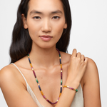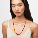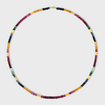 A colorful spectrum of sapphires combined with gold beads, this necklace exudes joy and vitality. Its diverse palette of hues makes it an eye-catching piece, perfect for expressing individuality and charm.