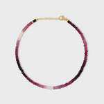 Ruby ombre anklet with small gold bead and gold chain hand strung together.