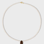 The Pearl Smoky Quartz Teardrop Necklace combines delicate, lustrous pearls with a stunning smoky quartz teardrop pendant. This elegant design beautifully balances the soft glow of the pearls with the rich depth of the smoky quartz, making it a timeless piece for any occasion.