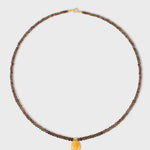 The Arizona Smoky Quartz Citrine Teardrop Necklace features delicate smoky quartz beads, beautifully strung and highlighted by a stunning citrine teardrop pendant. The natural earthy tones of the stones, combined with a gold clasp, create an elegant and grounding piece perfect for any occasion.
