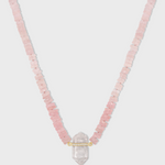 Aurora Rose Quartz Fancy Cut & Crystal Quartz Diamond Bar Charm Necklace