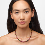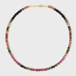 Incredible and gemmy fancy cut watermelon tourmaline necklace worn long and beautiful to layer.