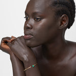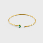 Vibrant Emerald gemstone and white diamond gold bendable cuff.