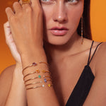 Vibrant double fire sapphire and white diamond gold bendable cuff.
