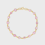 This vibrant bracelet features a delicate chain adorned with a row of sparkling pink sapphires. The minimalist design and bright color make it a versatile and eye-catching piece.