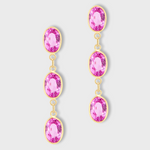 Sparkling pink sapphire stones shine vibrantly in this chic, oval-shaped design. Set in gold, these earrings add a pop of color to your outfit, offering a refined yet playful look.
