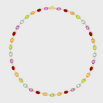 This stunning necklace features an array of colorful oval gemstones in a vibrant station layout, creating a truly eye-catching piece. Whether worn alone or layered, it adds a touch of playful luxury to your wardrobe.