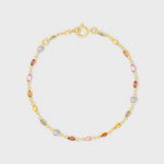 This elegant bracelet features a delicate chain accented with a mix of colorful gemstones. The understated elegance and vibrant colors make it a perfect piece for any occasion.
