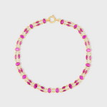 The ruby double marquee bracelet is designed to catch the eye with its stunning array of ruby stones set in yellow gold. The radiant red rubies give off a glamorous, vintage-inspired charm that is perfect for adding a luxurious touch to any outfit.