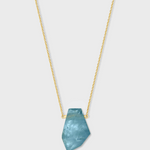 A raw-cut Aquamarine gemstone suspended from a fine 14k gold chain, designed to soothe and clarify. Known for its calming and cleansing energy, Aquamarine connects you to flow, truth, and gentle strength—like the sea it reflects.