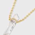 Crystalline Crystal Quartz Diamond Bar Charm Long Chain Necklace