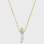Master of all healing crystals, our clear crystal quartz is custom hand set to the natural shape of the stone in 14 karat yellow gold on Italian gold chain. Truly one of a kind piece, created to attune to the vibration of each individual wearer.