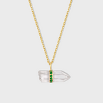 Crystalline Crystal Quartz Emerald Center Bar Charm Necklace