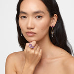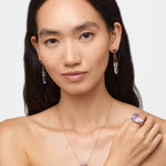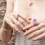 Above, a collection of raw amethyst crystals ethically sourced from Brazil for JIA JIA jewelry pieces