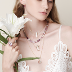Each beaded jewelry piece is hand strung from the highest quality materials that are cut from natural mineral sources. They are sensitive to prolonged exposure to hairsprays and scents. To ensure longevity please be gentle and avoid tugging and pulling of these pieces.