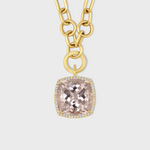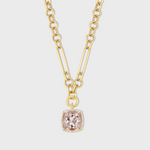 The morganite gemstone charm is cut in a geometric shape and is detachable to the necklace -- handcrafted in New York City with 14k gold. Wear this necklace on its own, with your crystal, or other charms.