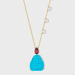 Happy Buddha Turquoise Tourmaline Crown Pearl Necklace
