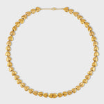 The Hematite Golden Heart Necklace showcases a striking design with polished golden heart-shaped beads, creating a bold yet elegant statement piece that embodies love and beauty. Perfect for adding a touch of luxury to any outfit.