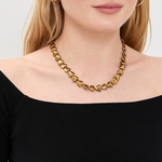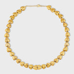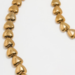 The Hematite Golden Heart Necklace showcases a striking design with polished golden heart-shaped beads, creating a bold yet elegant statement piece that embodies love and beauty. Perfect for adding a touch of luxury to any outfit.