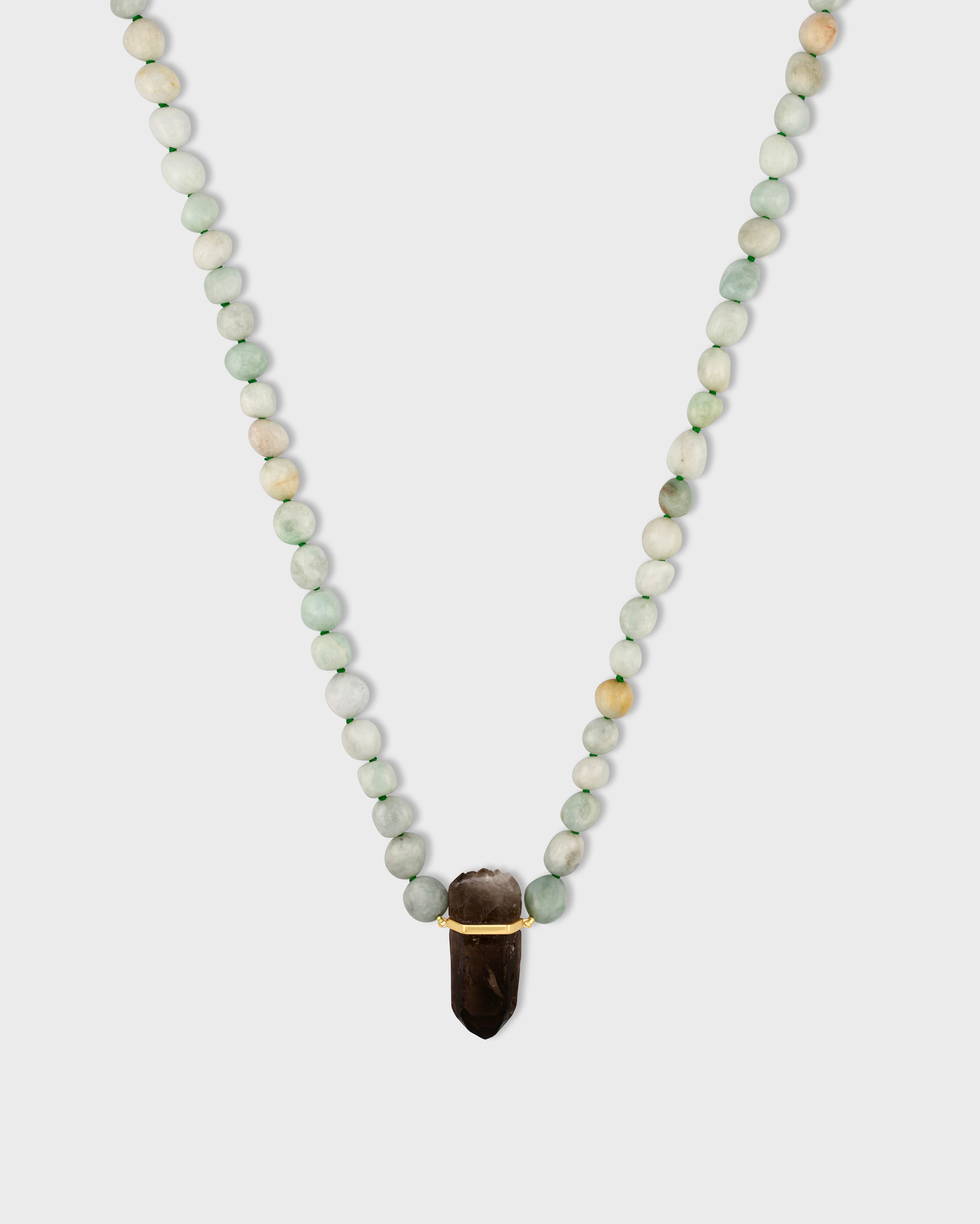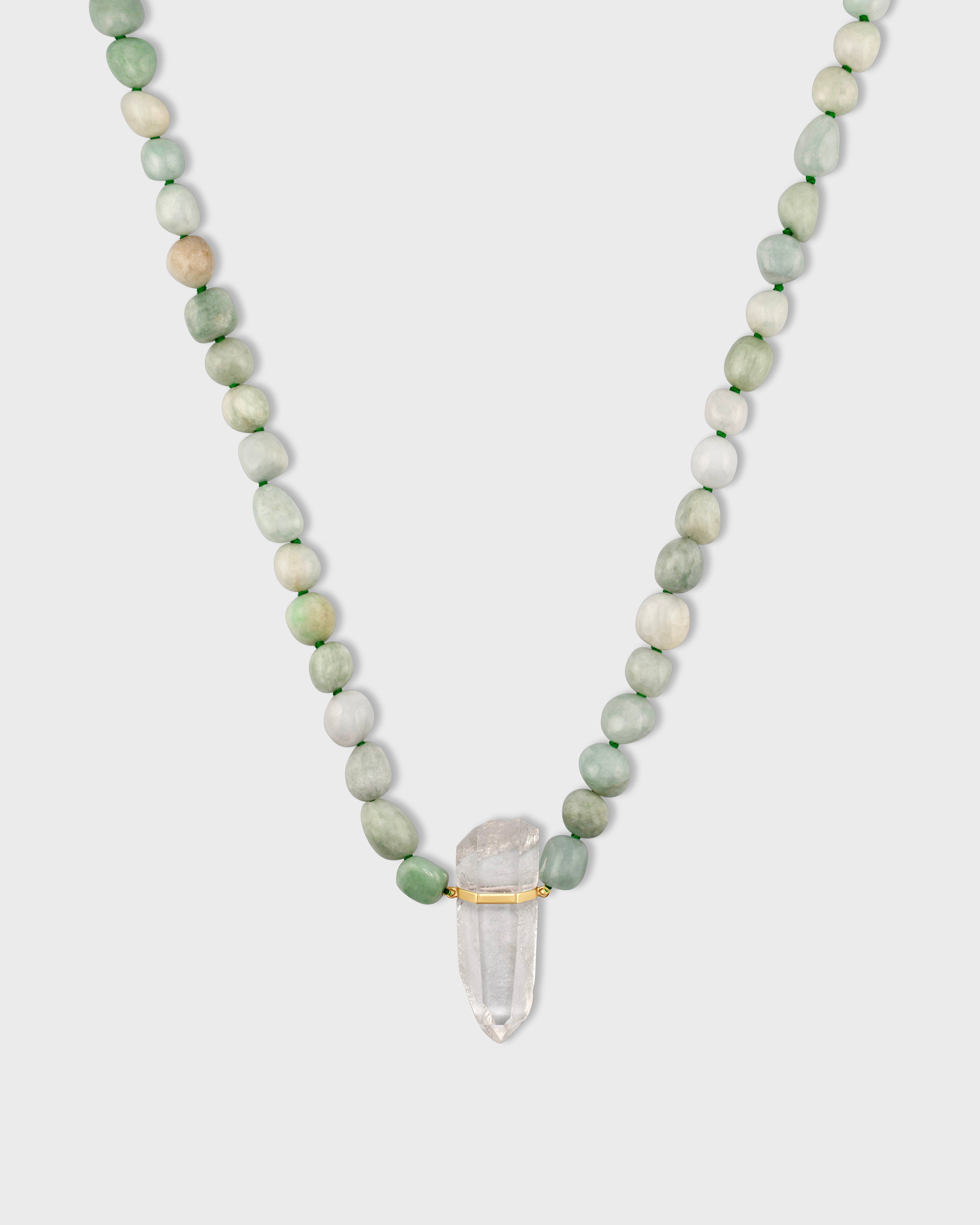 Jade nugget necklace with a smoky quartz charm custom handset in 14 karat gold in our New York City workshop. Each crystal is one-of-a-kind with natural clarity and shapes that attune to vibrational needs of the beholder.
