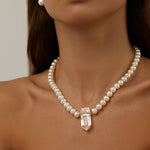 Ocean Jumbo Diamond Crystal Quartz Pearl Necklace