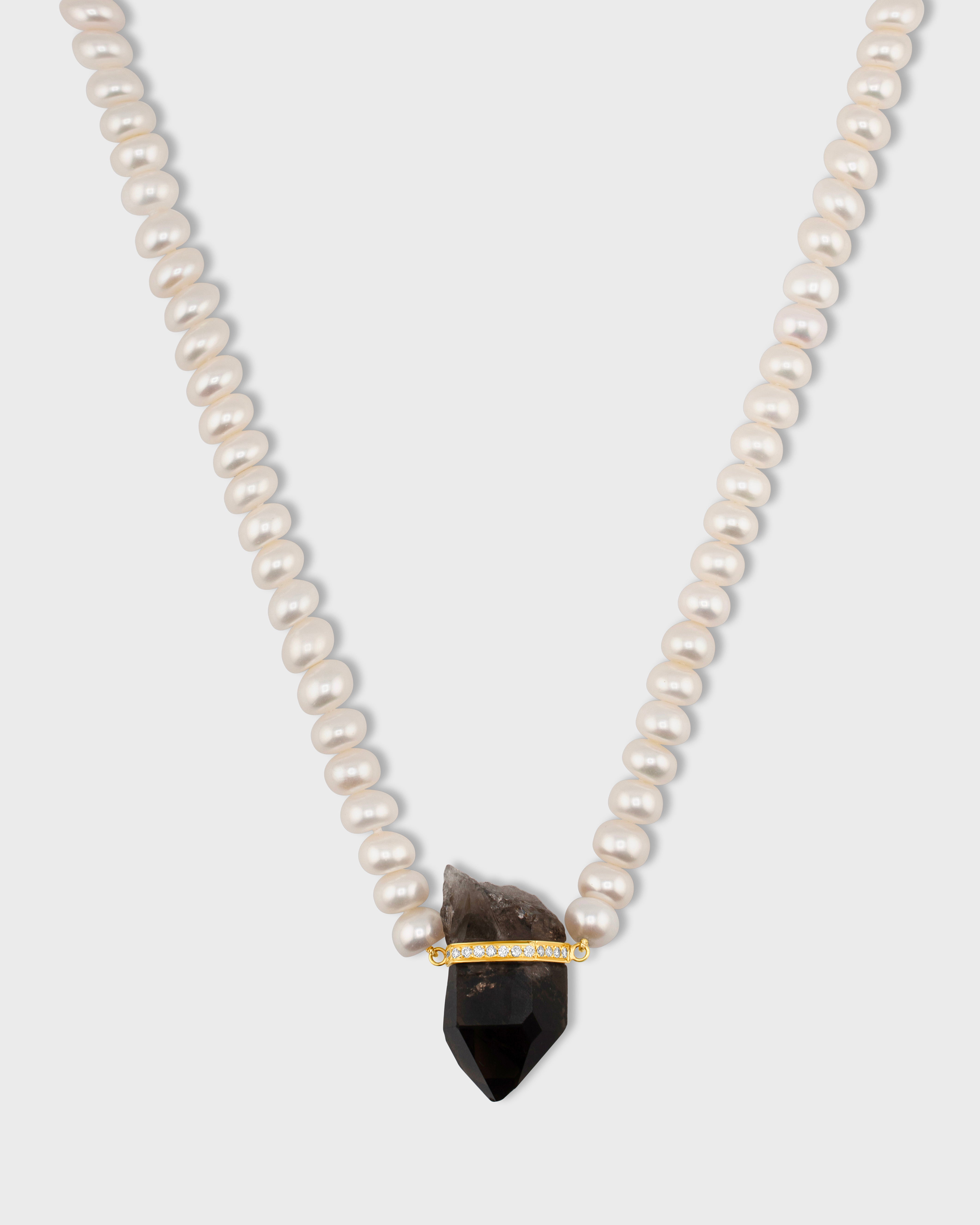 Ocean Jumbo Diamond Smoky Quartz Pearl Necklace