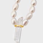Ocean Vertical Pearl with Crystal Quartz Charm Necklace