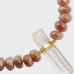Beautiful peach moonstones in faceted cuts adorned in the center with our signature crystal quartz with custom hand set gold bar.