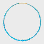 Blue sapphire and opal necklace hand strung in New York City and finished with 14 karat yellow gold.