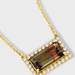 Treasure Mini Rainbow Tourmaline Diamond Bezel Necklace