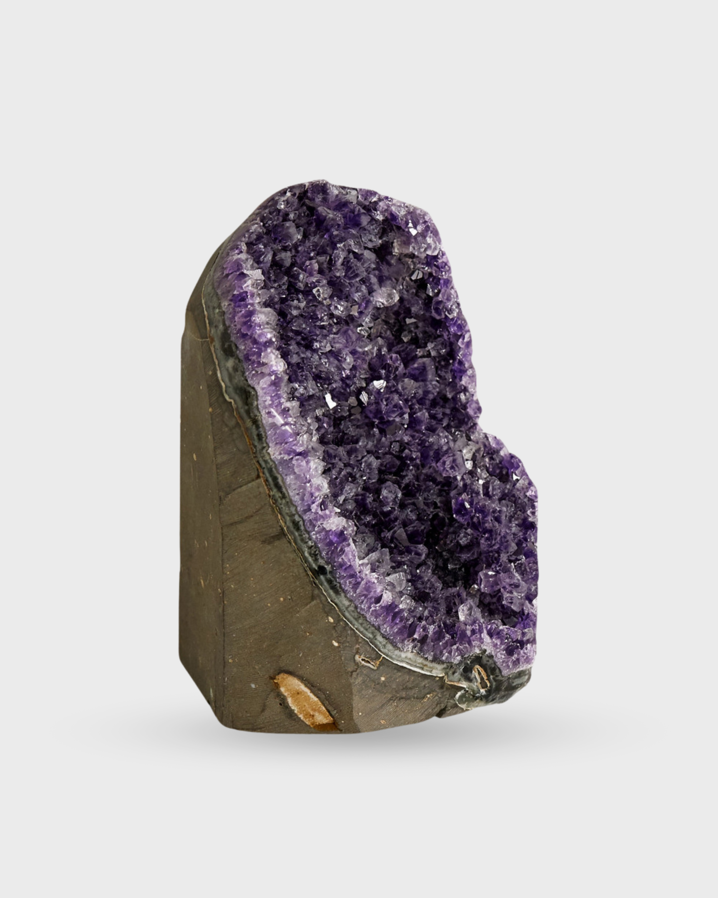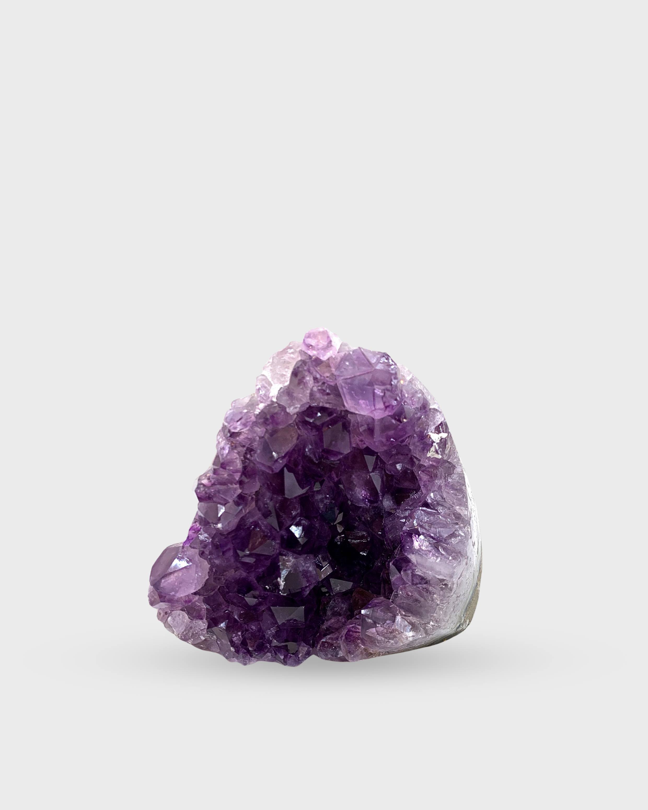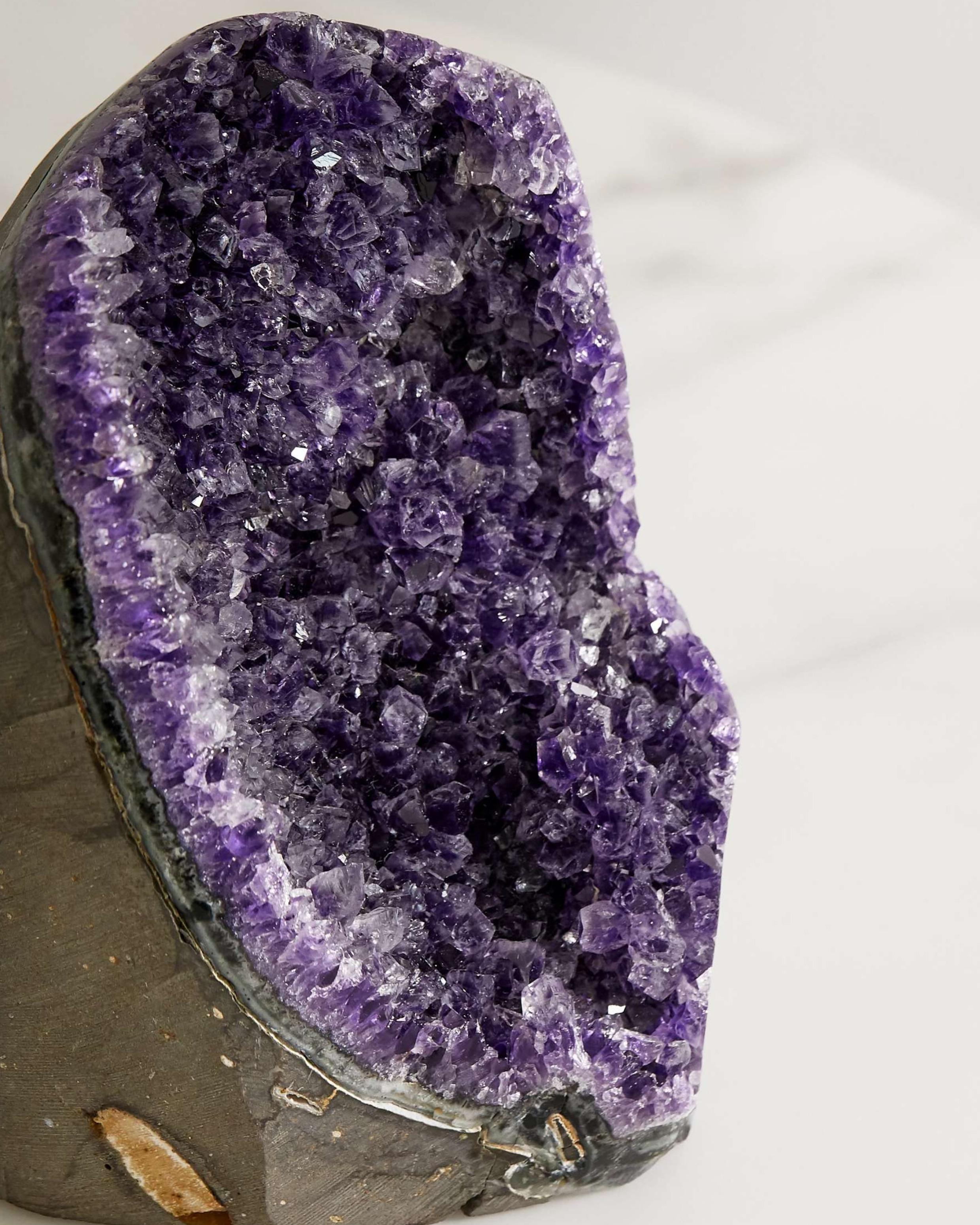This stunning Amethyst Dark Druzy Geode from Brazil showcases deep, rich purple hues with clear, sparkling mini clusters. Carefully shaped and polished, this geode highlights the natural beauty and powerful energy of amethyst, making it a perfect addition for those seeking tranquility and spiritual clarity. Each piece is unique, ensuring an authentic and one-of-a-kind treasure for your space.