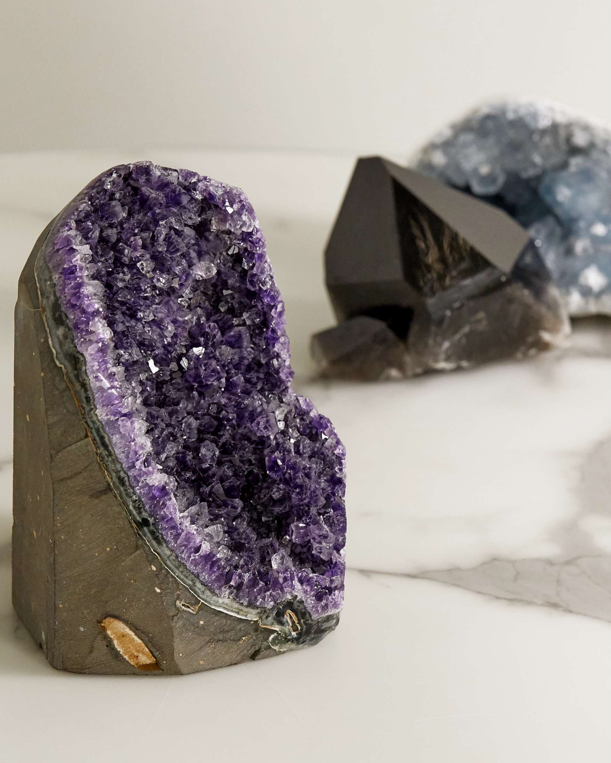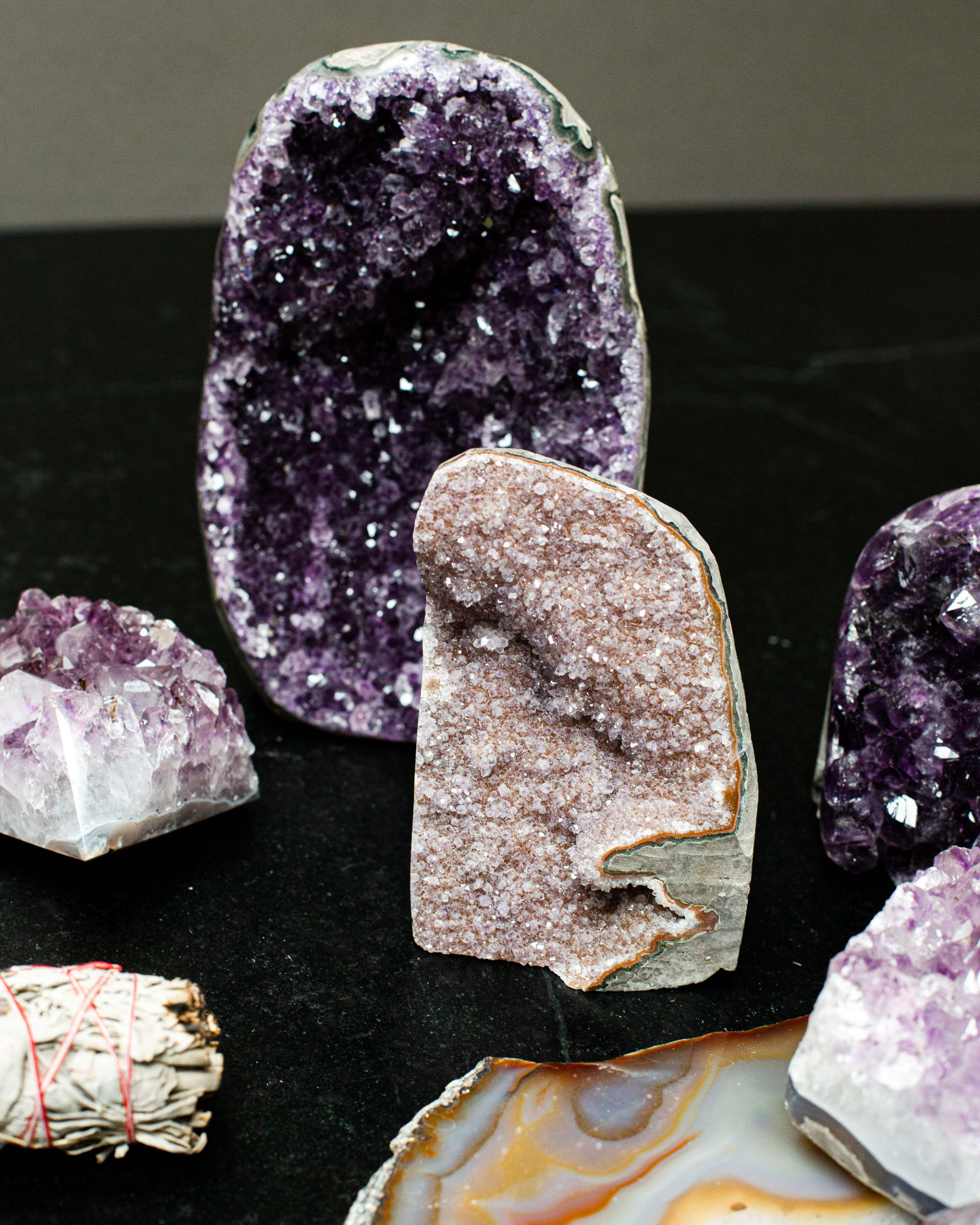 Amethyst is believed to hone and amplify one's creative elements and assist in creating new and original results using methods and tools of the past. This vibrant and gentle purple crystal enhances our ability to balance and soothe our inner emotions. It shows us how in grounding our sensitivities, we can use them as allies in creation. This crystal connects us to the spiritual world opening up a portal of answers we may be seeking.