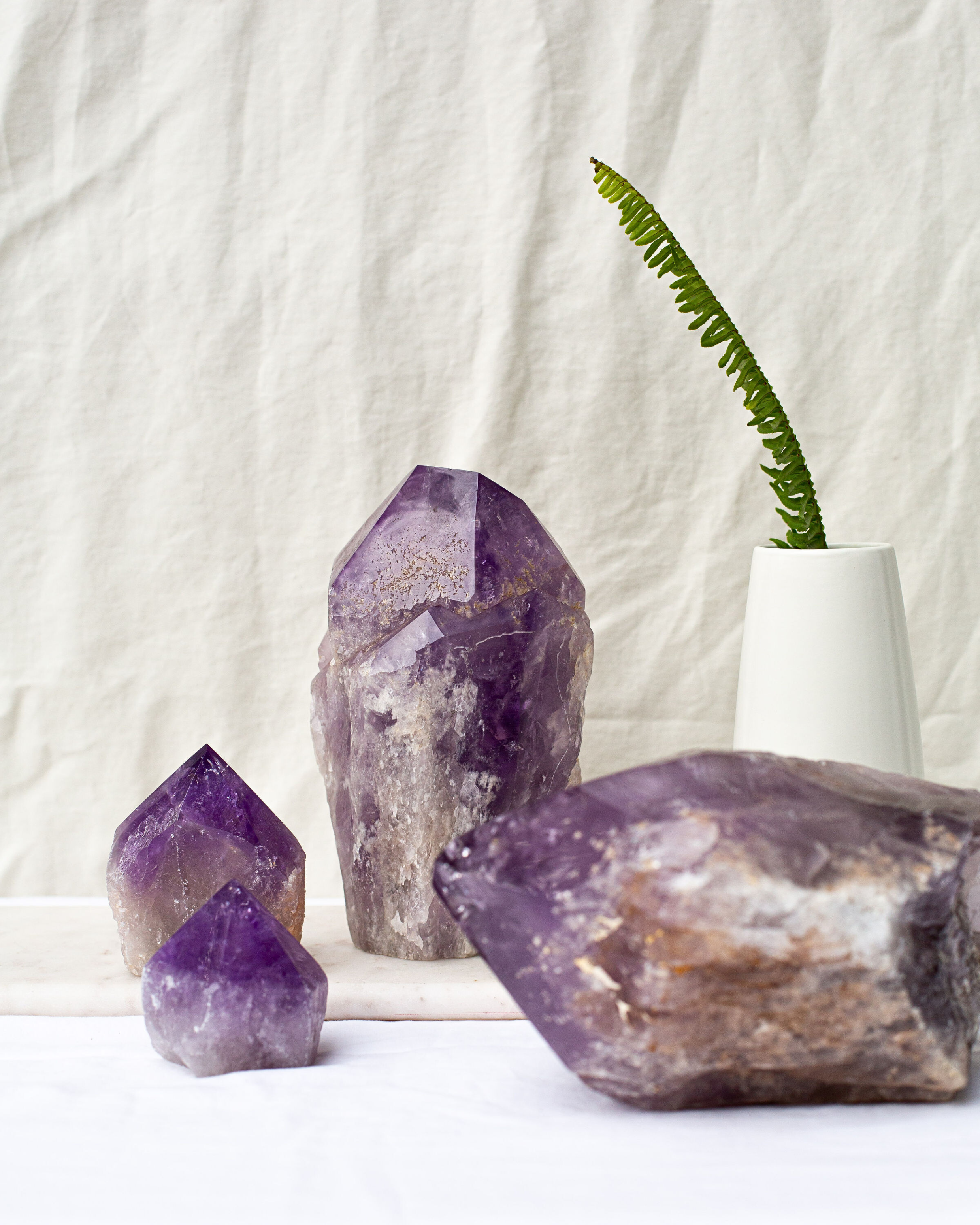 Amethyst is believed to hone and amplify one's creative elements and assist in creating new and original results using methods and tools of the past. This vibrant and gentle purple crystal enhances our ability to balance and soothe our inner emotions. It shows us how in grounding our sensitivities, we can use them as allies in creation. This crystal connects us to the spiritual world opening up a portal of answers we may be seeking.