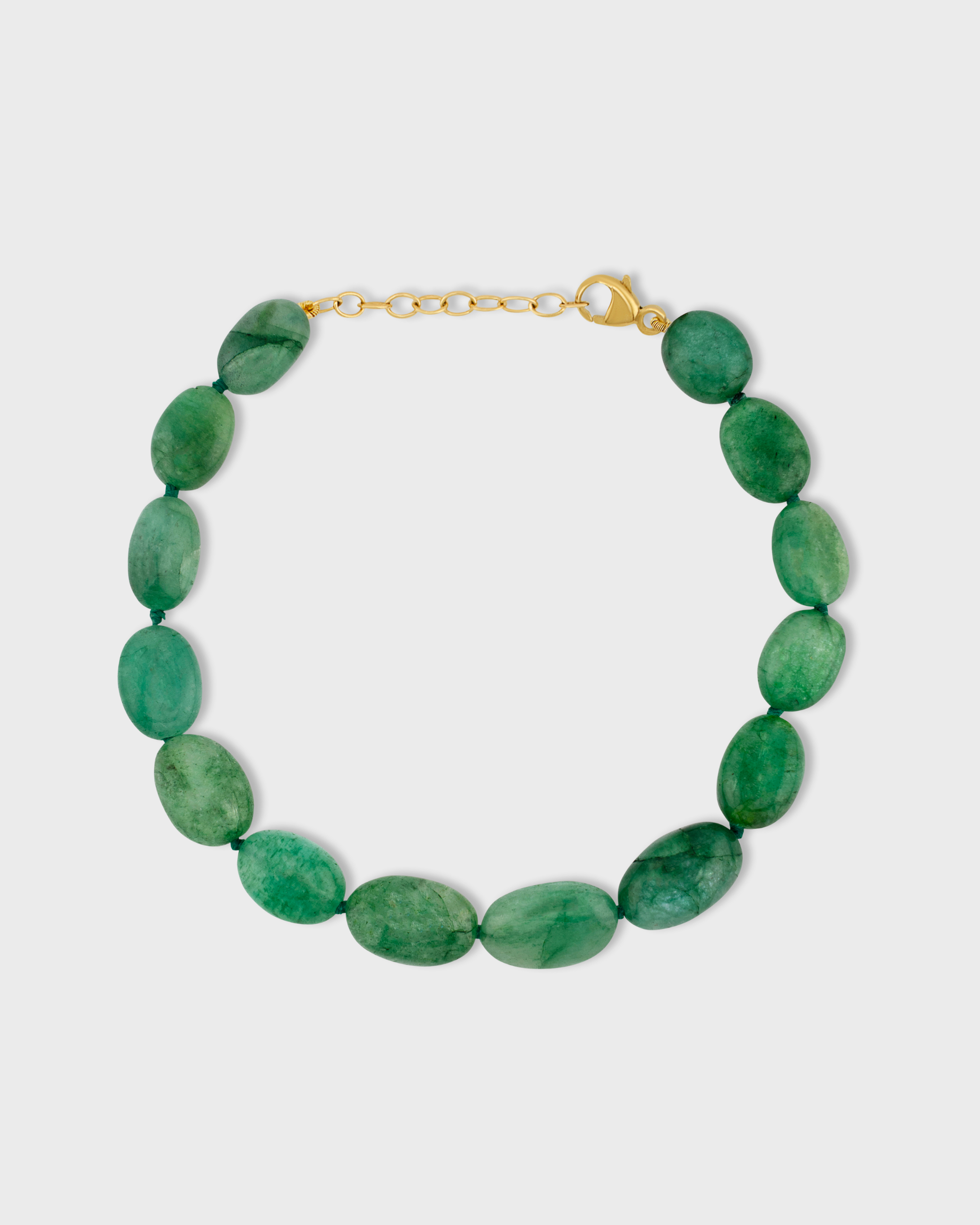 Radiating vibrant green tones, this emerald quartz bracelet is a stunning nod to nature's beauty. Its smooth, polished stones make it a versatile piece for both casual and formal wear.