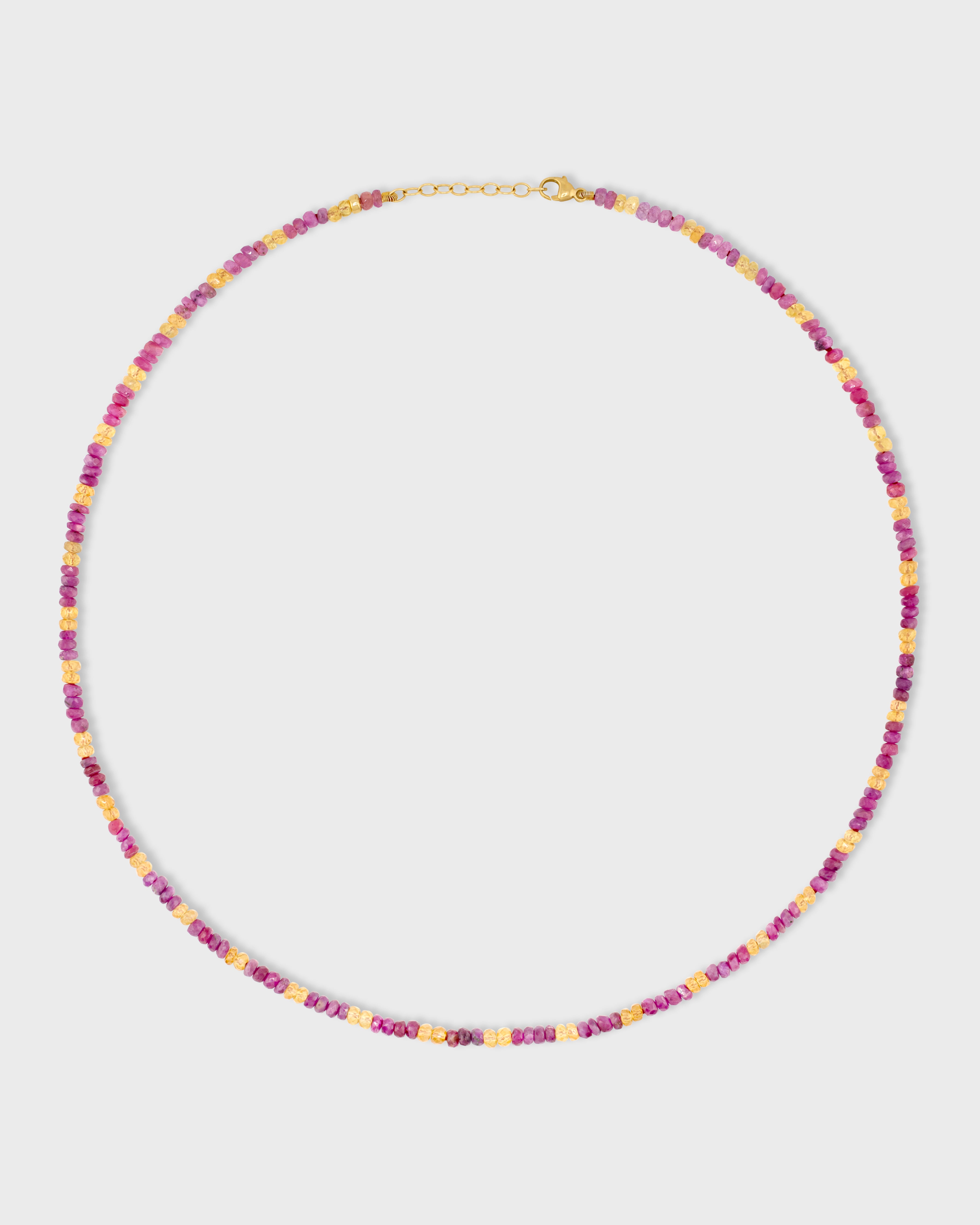 Celebrate femininity and joy with this necklace, featuring a cheerful blend of pink and yellow sapphires. It's a delightful accessory for uplifting your style.