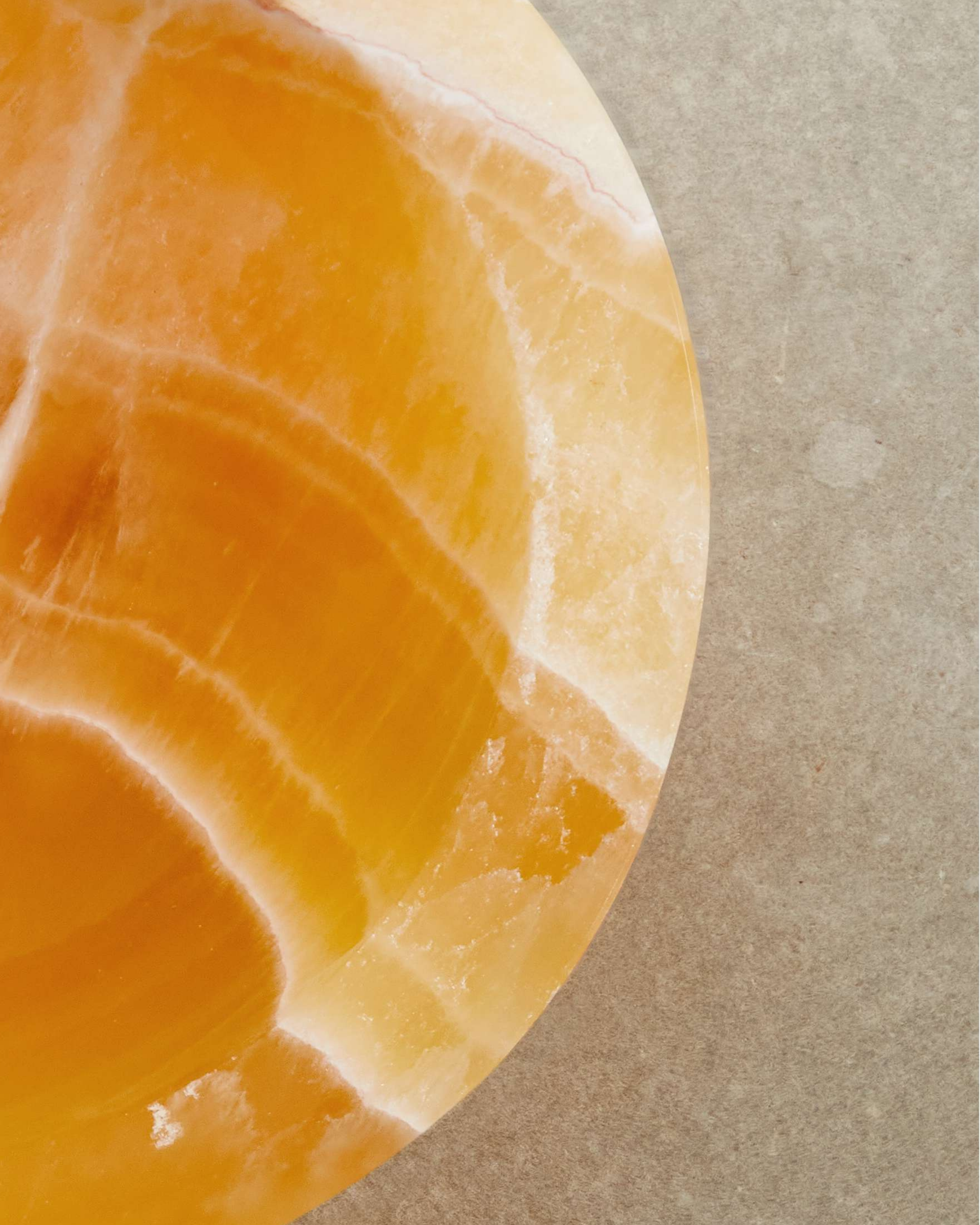 This Honey Calcite Bowl features beautifully polished surfaces that highlight its natural, orange hues. Ideal for holding small keepsakes or simply as a decorative accent, it brings an elegant and serene feel to any tabletop or display area. A perfect piece to enrich your home's ambiance with the soft glow of calcite.