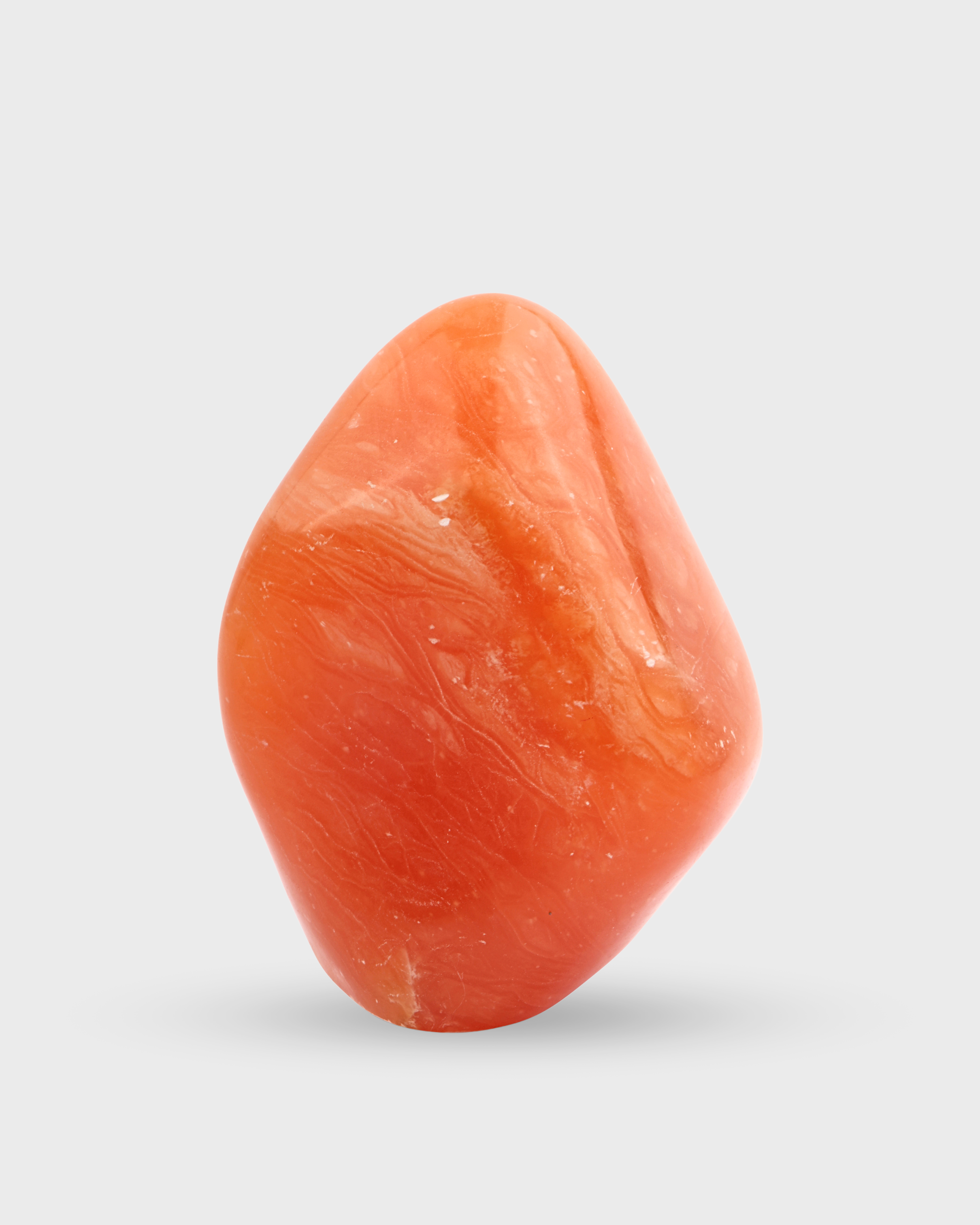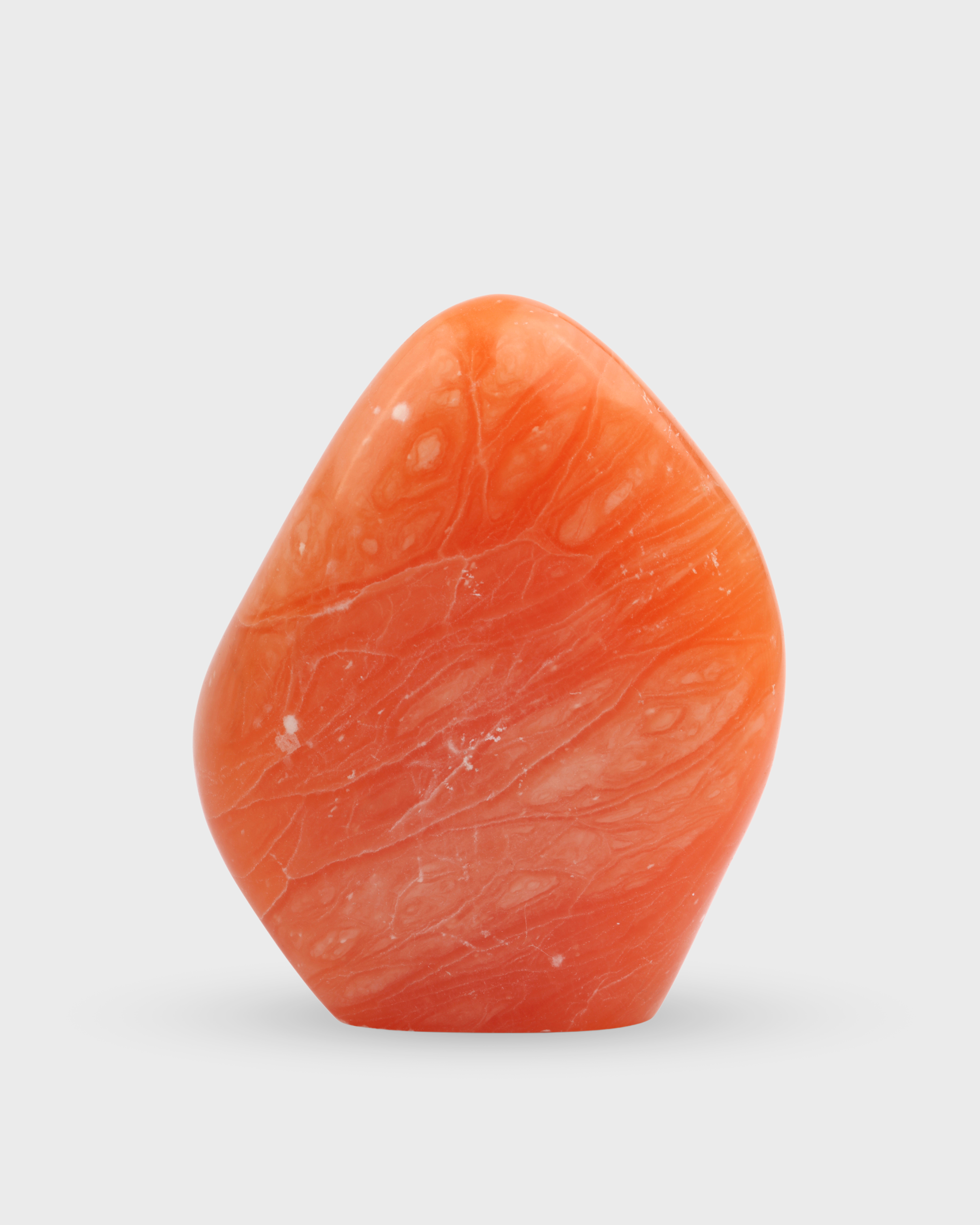 The Orange Calcite Dome radiates vibrant energy with its warm, sun-kissed hues. Known for promoting joy and creativity, this piece adds a lively touch to your home or workspace. Its smooth, polished surface captures light beautifully, making it a striking accent piece.
