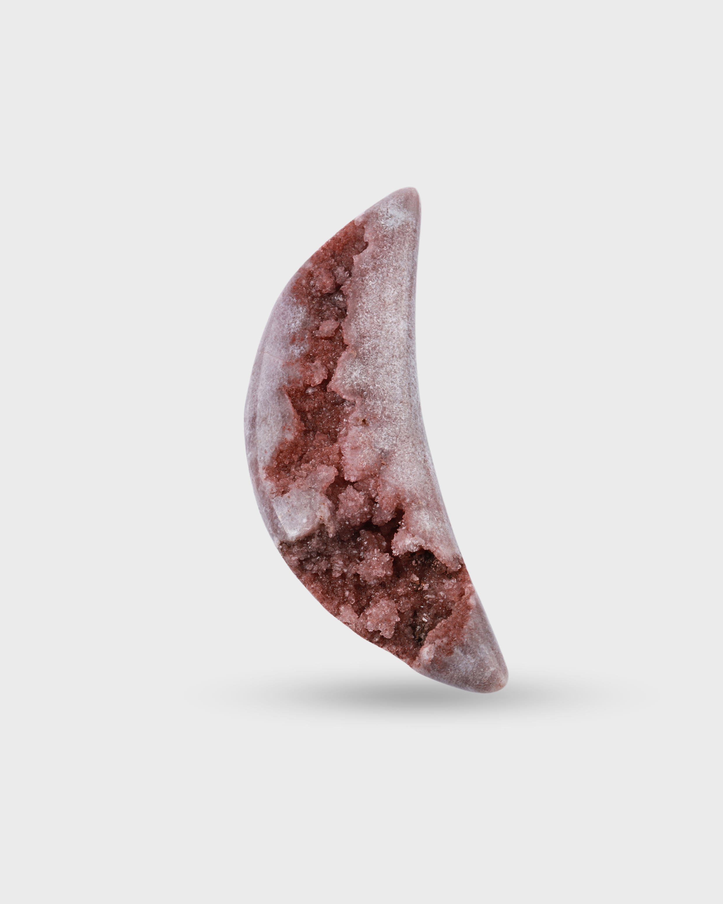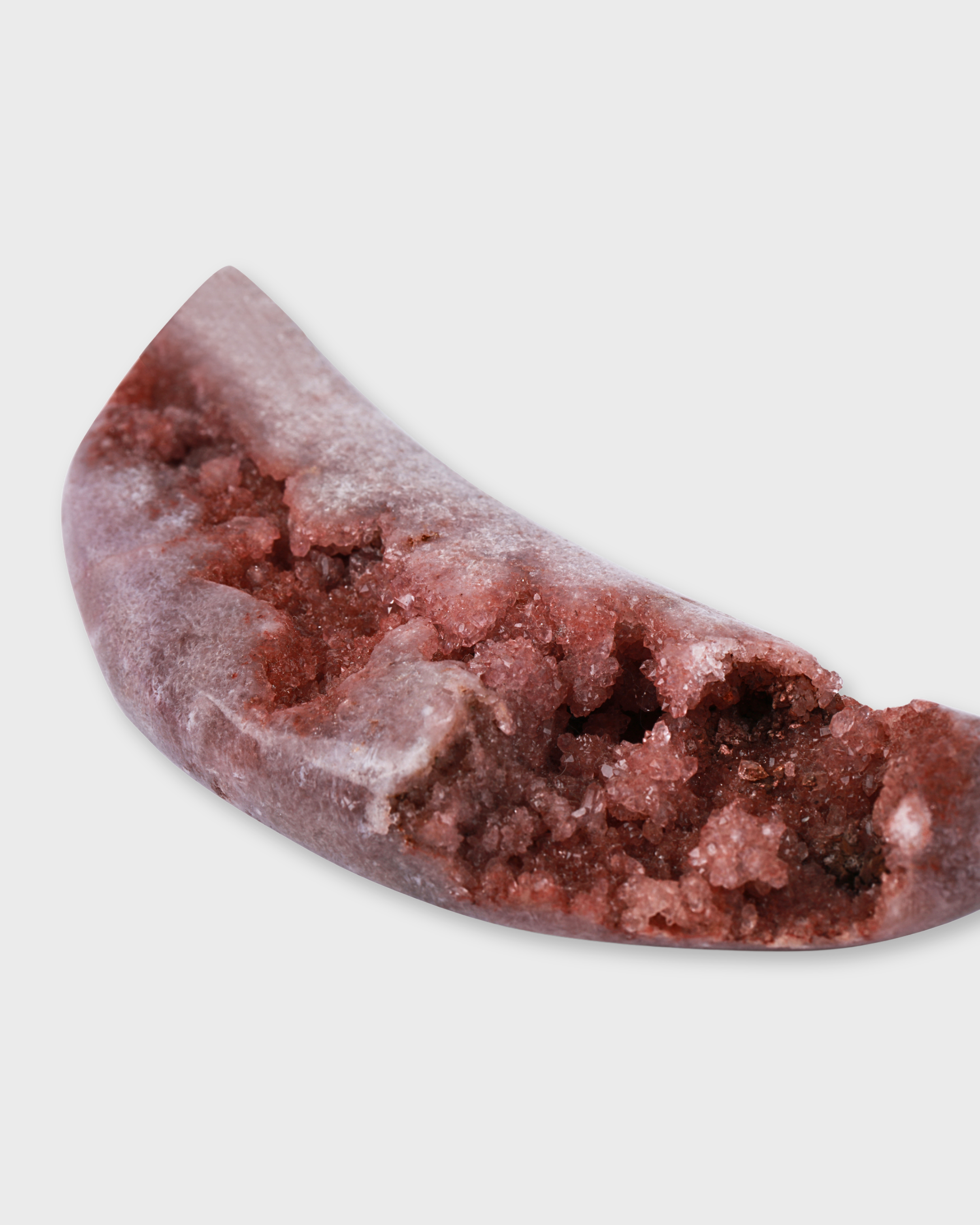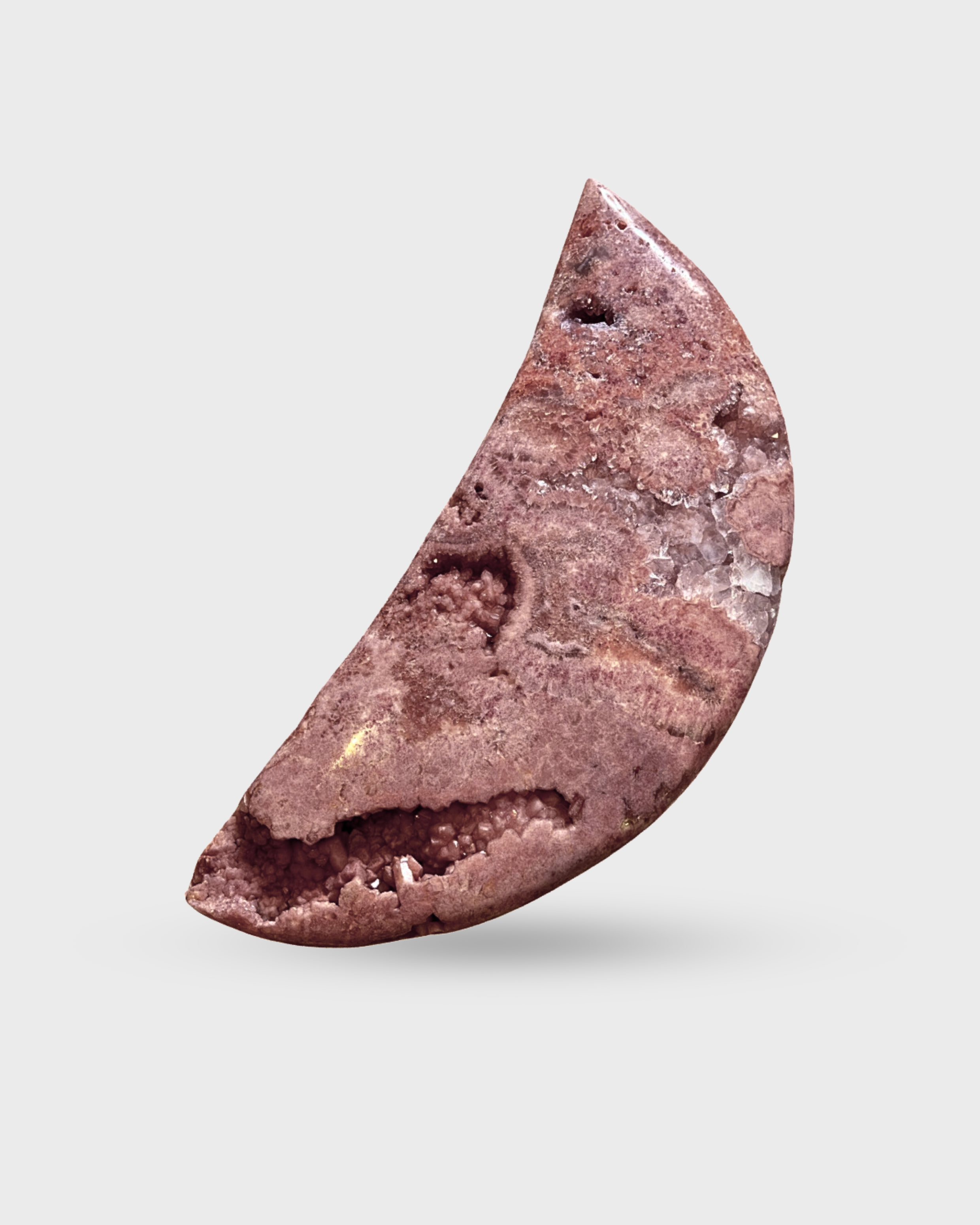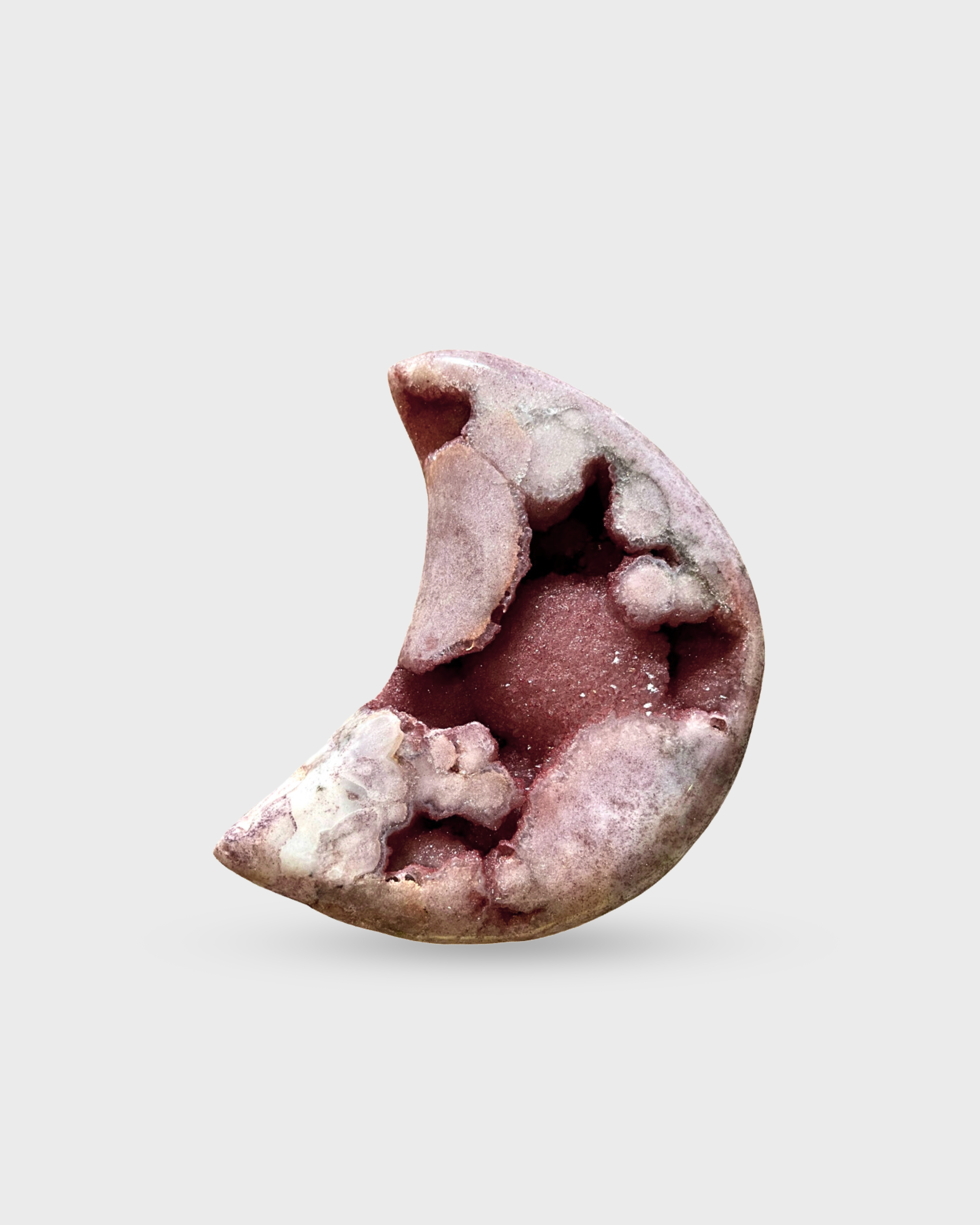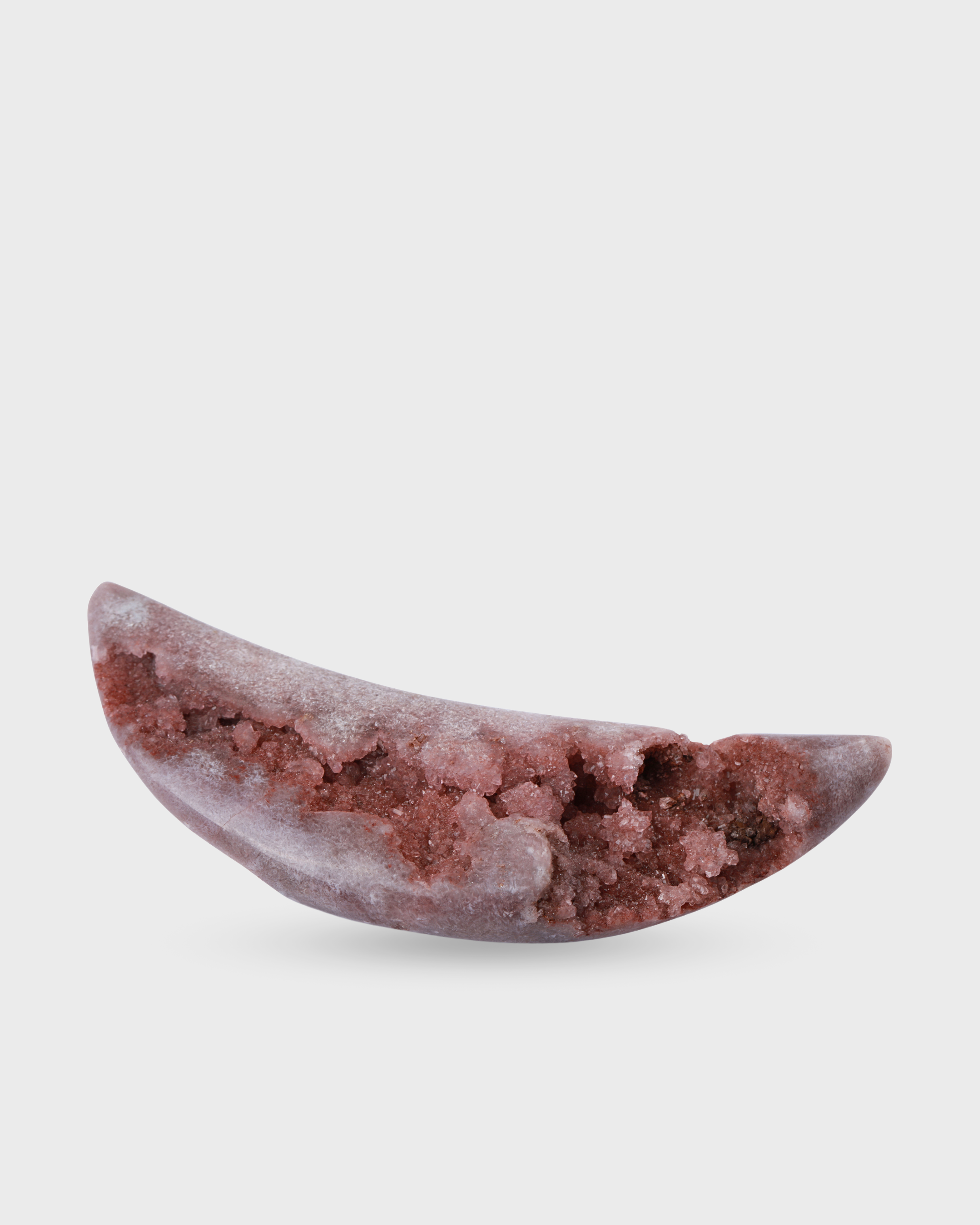 Shaped like a crescent moon, this Pink Amethyst piece embodies gentle, feminine energy and emotional healing. Its soft pink hues and crystalline structure make it a unique decorative piece or a tool for meditation. A perfect addition to any space seeking peace and harmony.