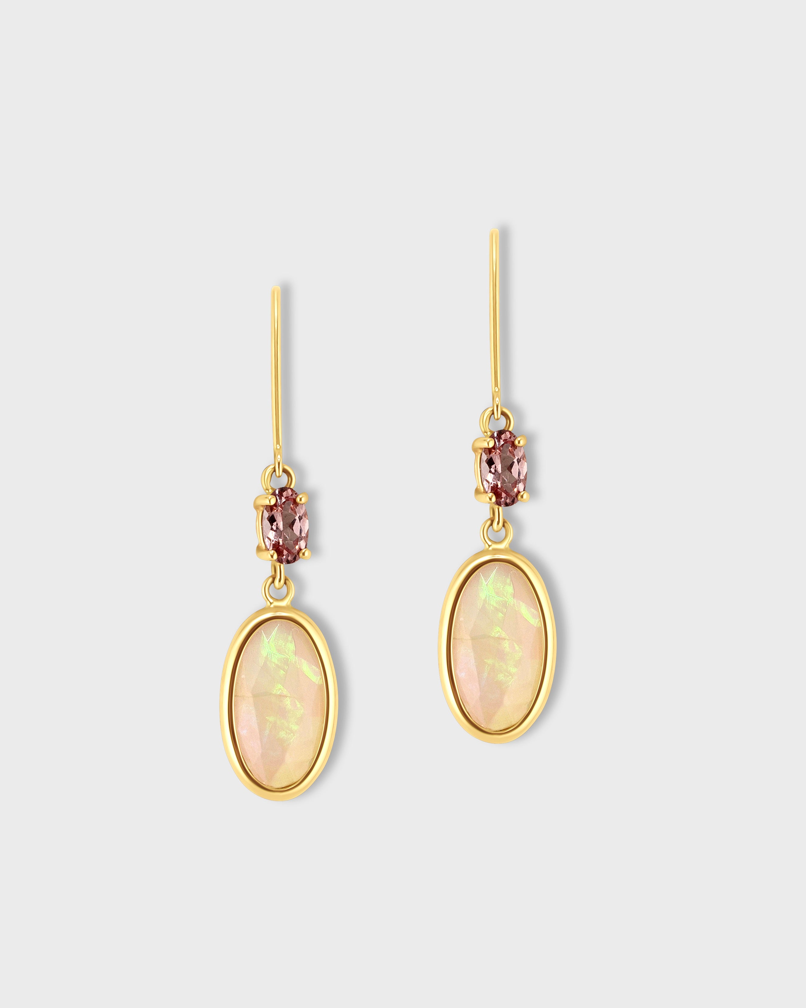Elegant lavender sapphires paired with luminous opals make these earrings a true statement piece, showcasing a balance of serene and vibrant hues.