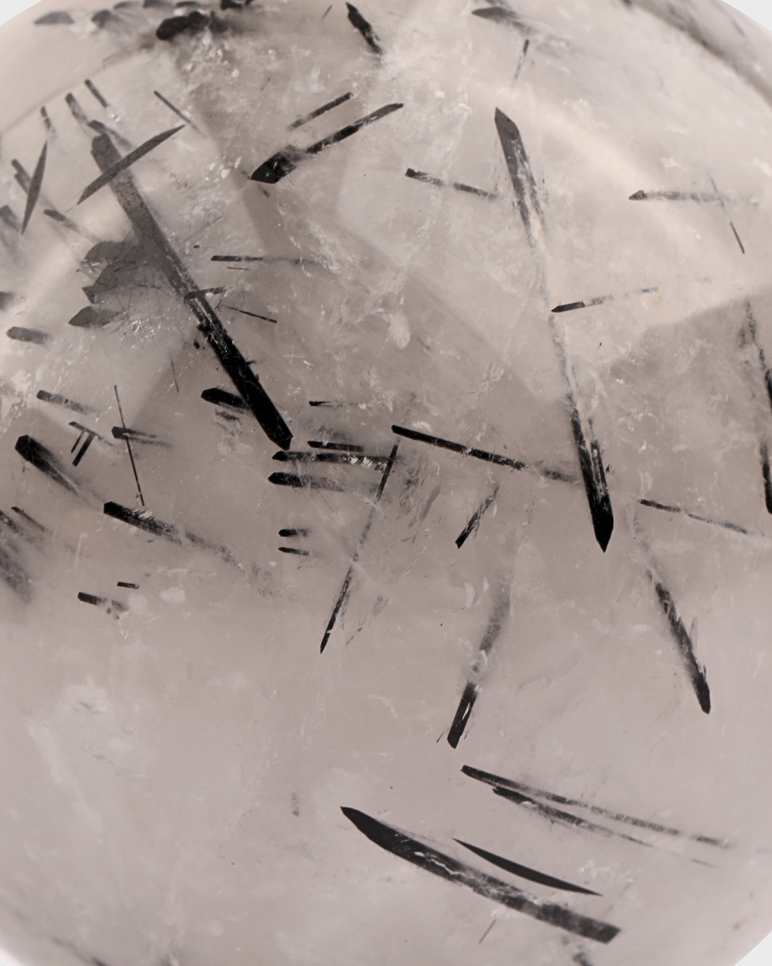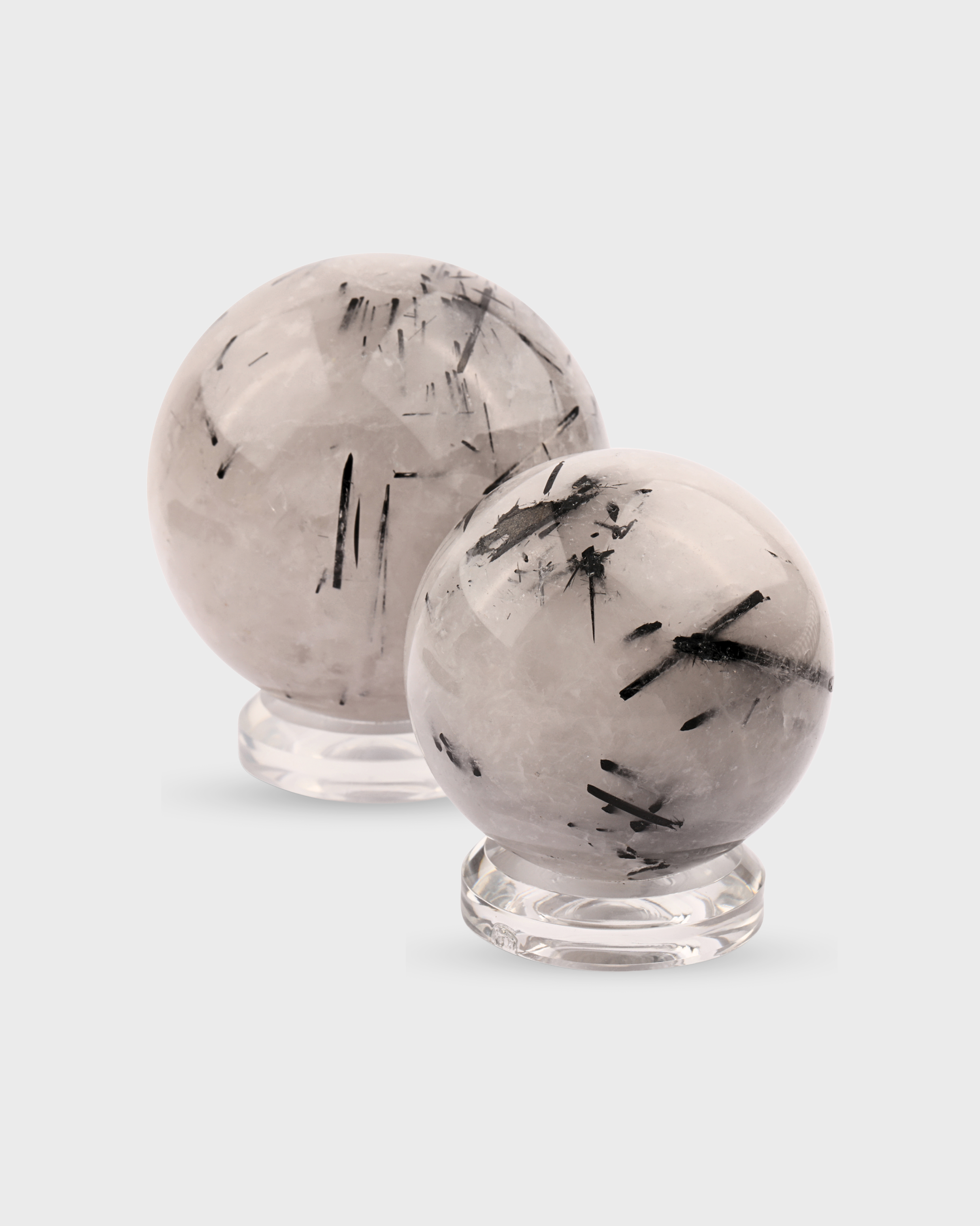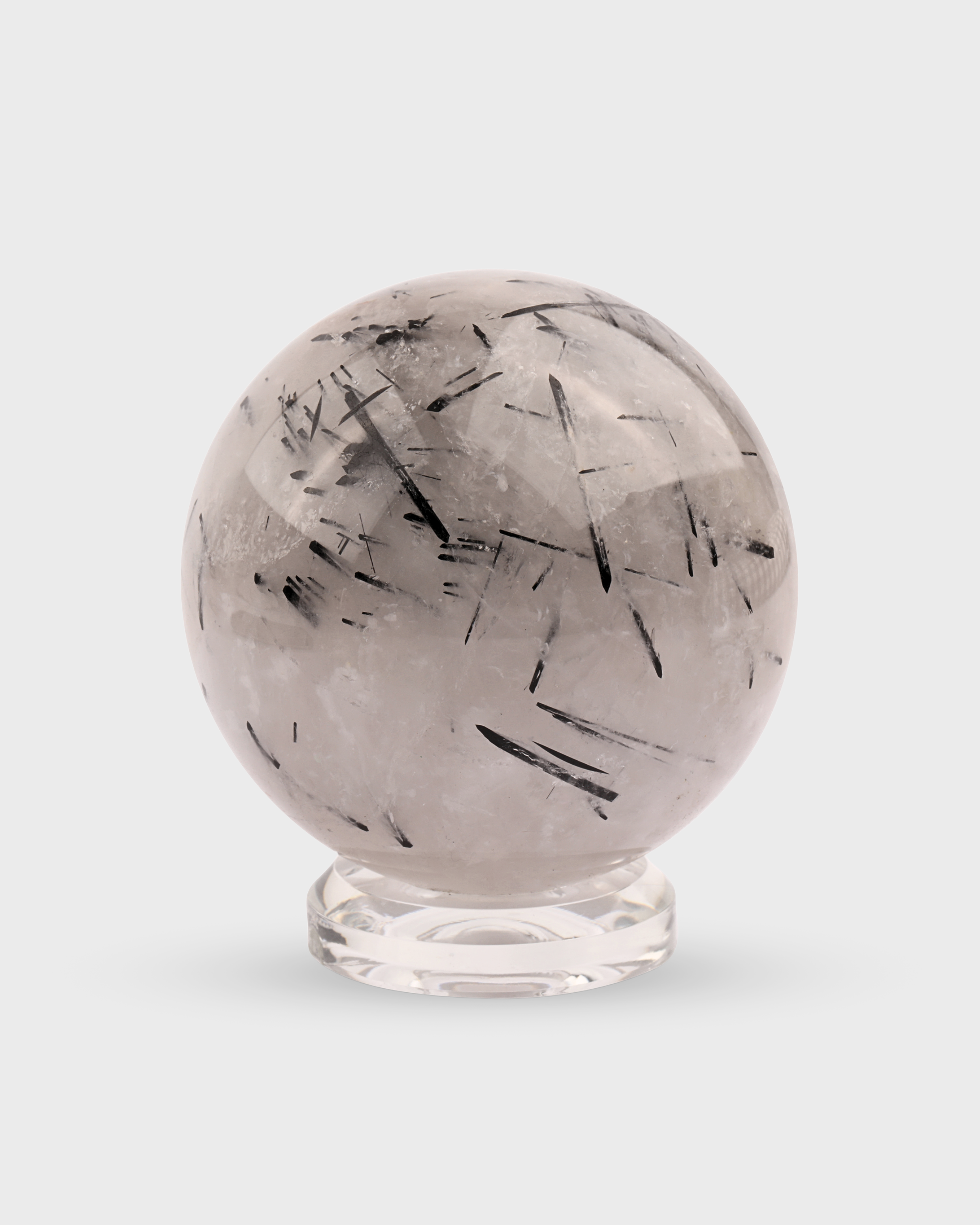 This stunning Tourmalated Quartz Sphere features clear quartz interspersed with striking black tourmaline needles. It is a powerful stone for protection, grounding, and balancing energy. Ideal for cleansing negative energy from a room while promoting clarity and focus.